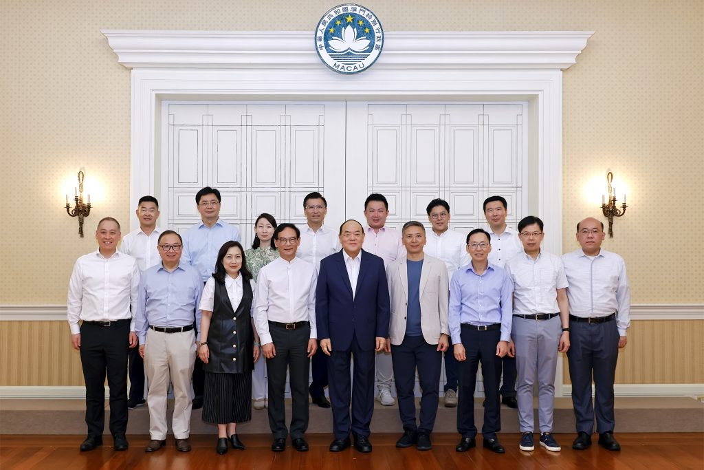 Visiting Macau Chief Executive Ho Iat Seng and take a group photo