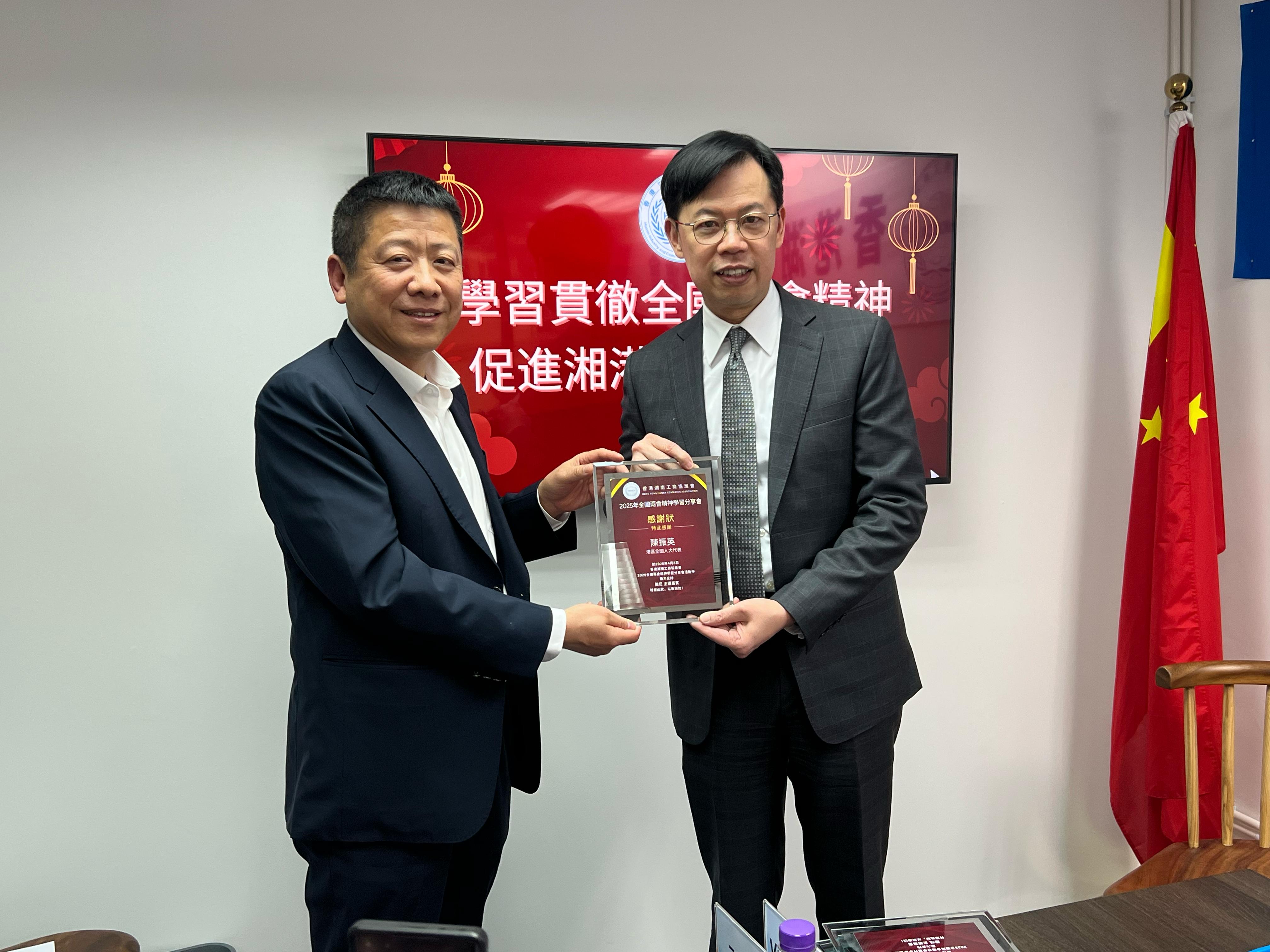 Attending the 2025 National Two Sessions Spirit Study Session of the Hong Kong Hunan Industry and Commerce Association April 3, 2025 April 28, 2025