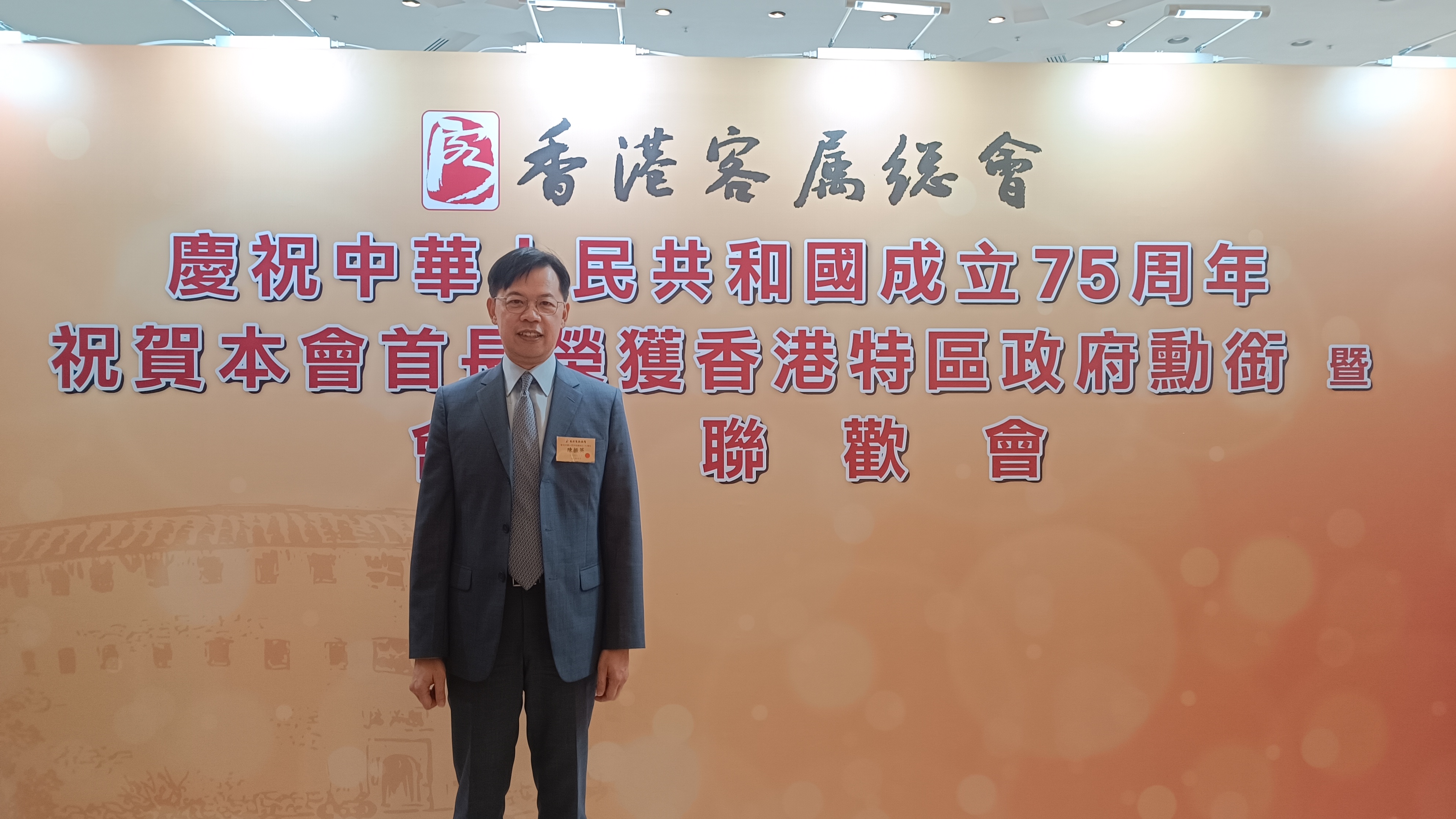 Attending the Hong Kong Hakka Association’s celebration of the 75th anniversary of the founding of the People’s Republic of China and congratulated the association’s chief executive on being awarded an honorary title by the Hong Kong SAR Government and a member’s party.