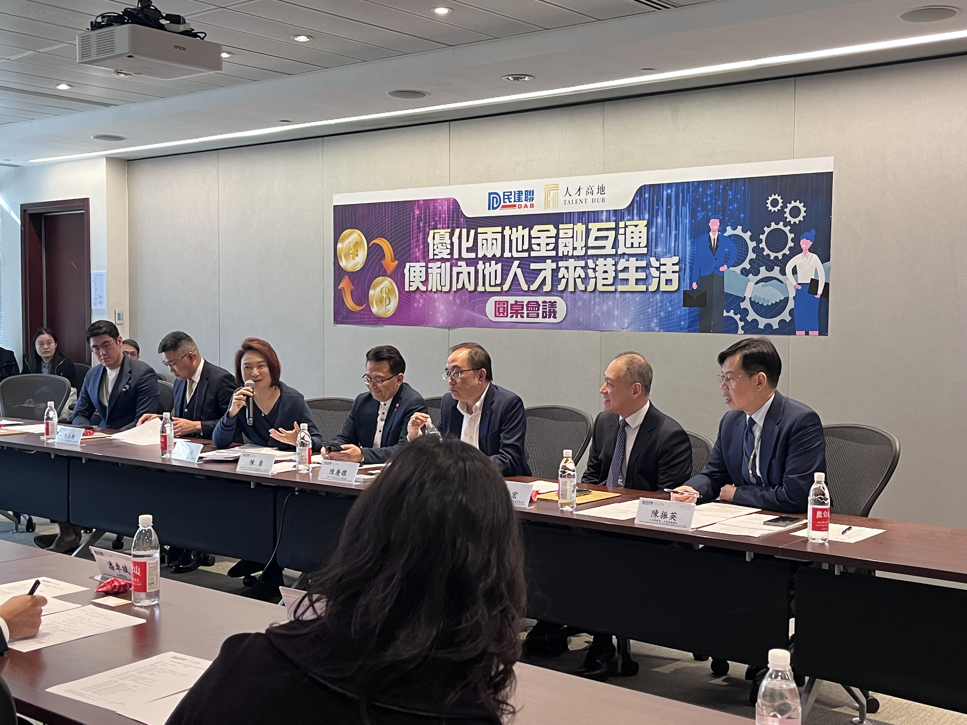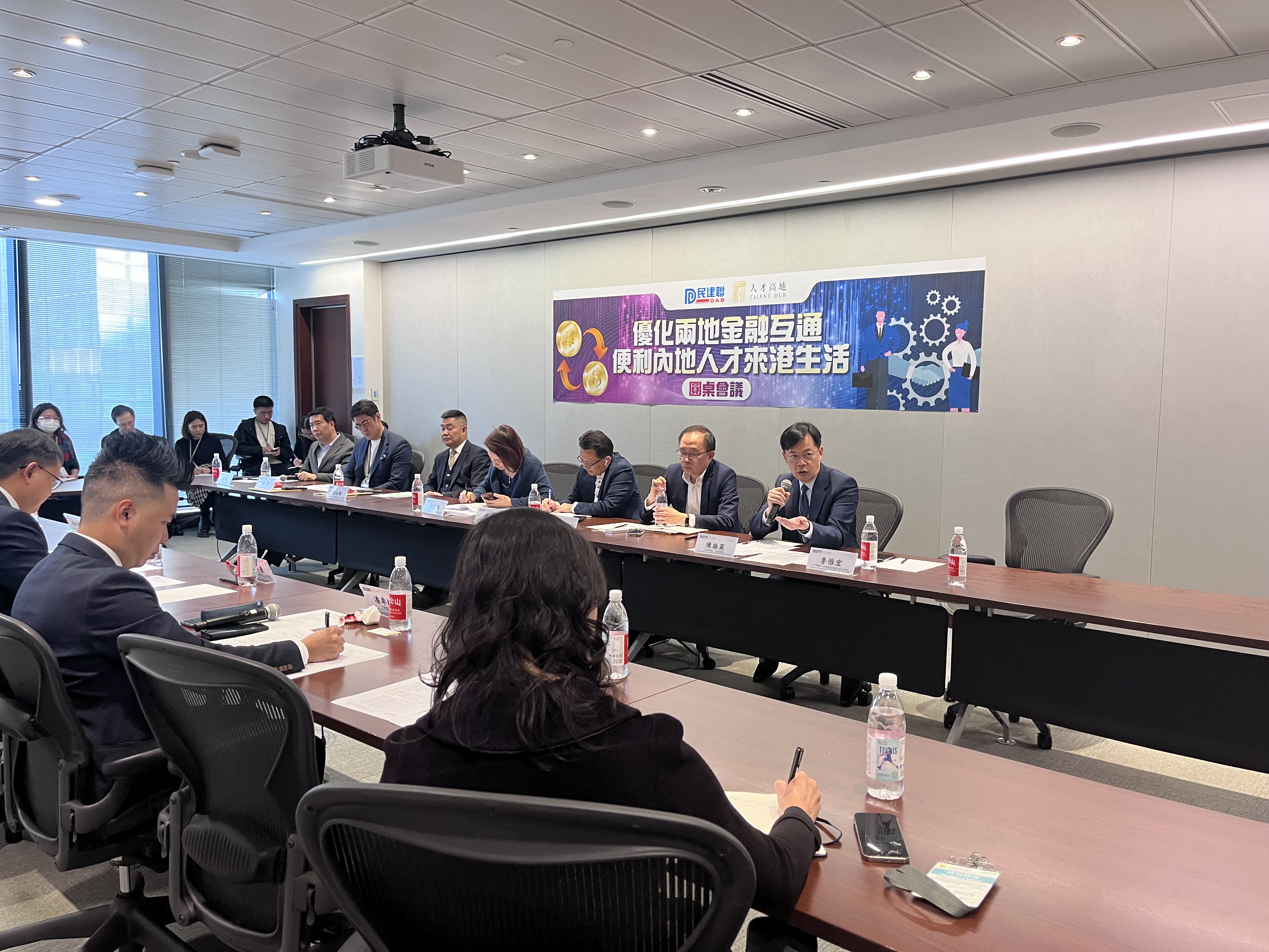 Attending the roundtable meeting on “Optimizing Financial Interconnection between the Two Places and Facilitating Mainland Talents to Come and Live in Hong Kong” held by the Democratic Alliance for the Betterment of Hong Kong (DAB).