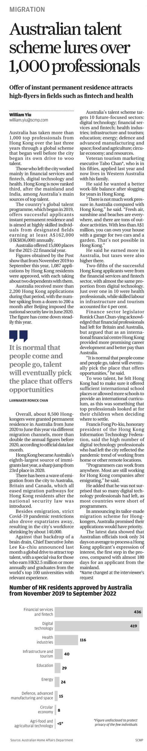 Australian talent scheme lures over 1,000 professionals November 22, 2022 November 22, 2022 Issued at South China Morning Post on 22 November 2022