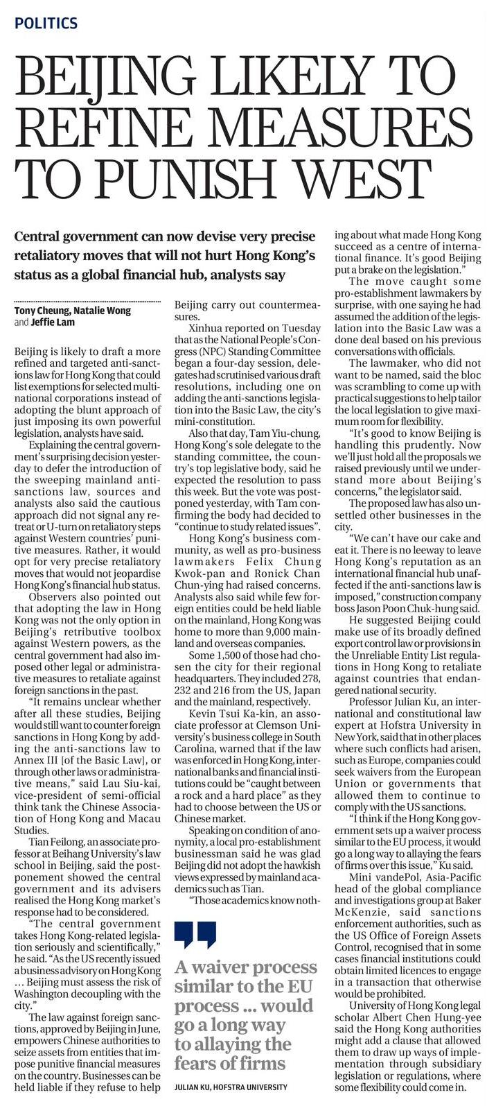 Beijing likely to refine measures to punish west August 21, 2021 August 26, 2021 Issued at South China Morning Post on 21 June 2021
