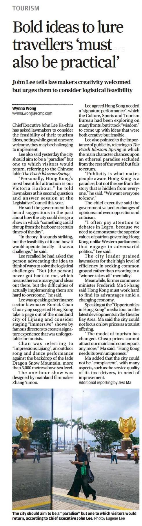 Bold ideas to lure travellers ‘must also be practical’ June 14, 2024 June 14, 2024 Issued at South China Morning Post on 14 June 2024