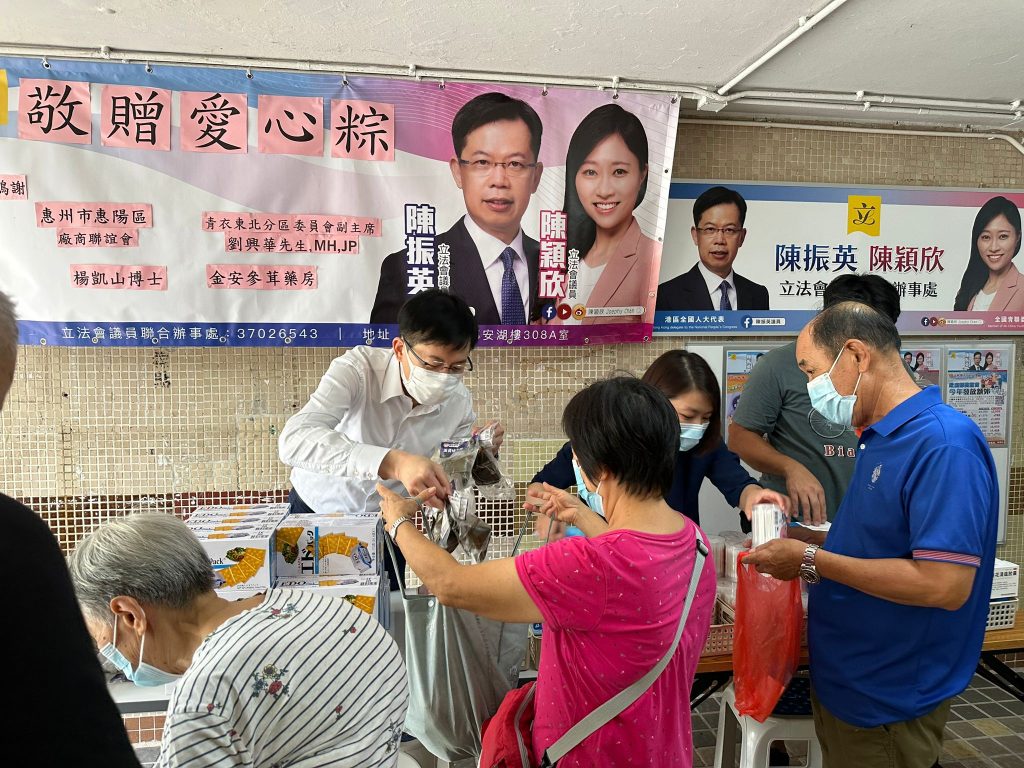 Distributing rice dumplings and festive items to the public at the District Office of Cheung On Estate, Tsing Yi