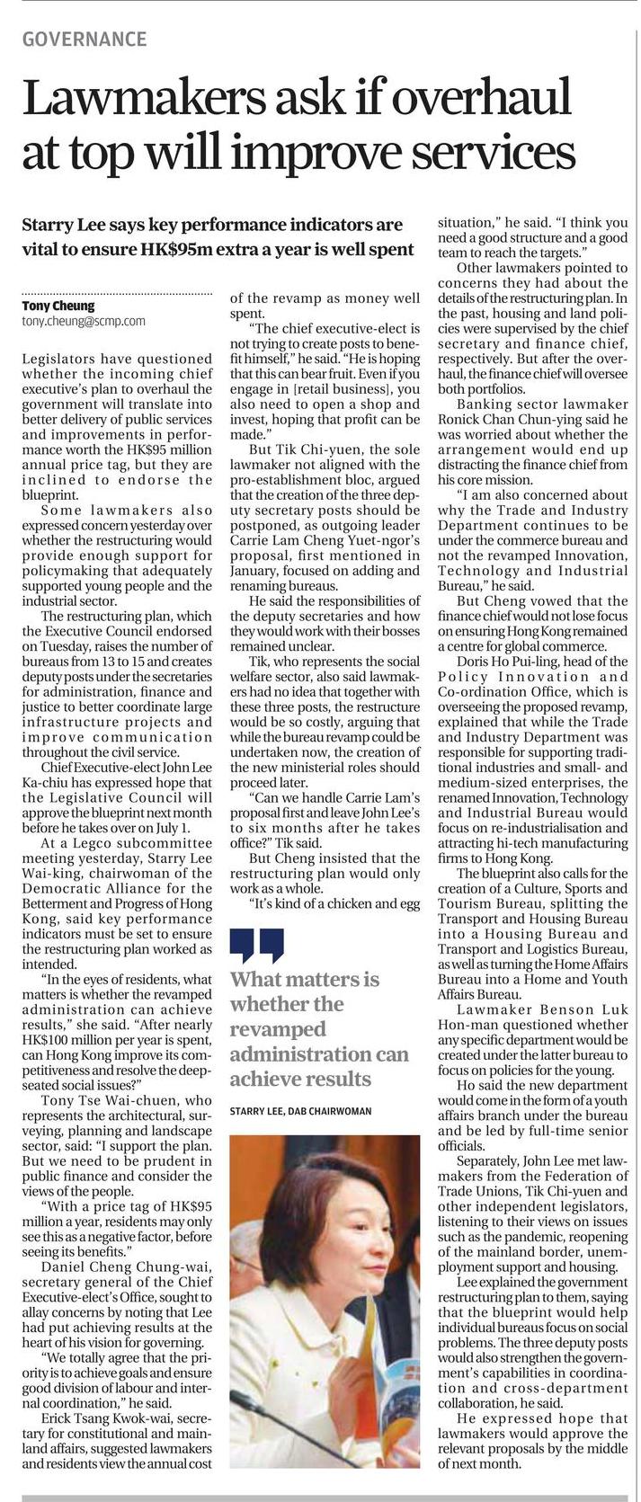 Lawmakers ask if overhaul at top will improve services May 21, 2022 May 27, 2022 Issued at South China Morning Post on 21 May 2021