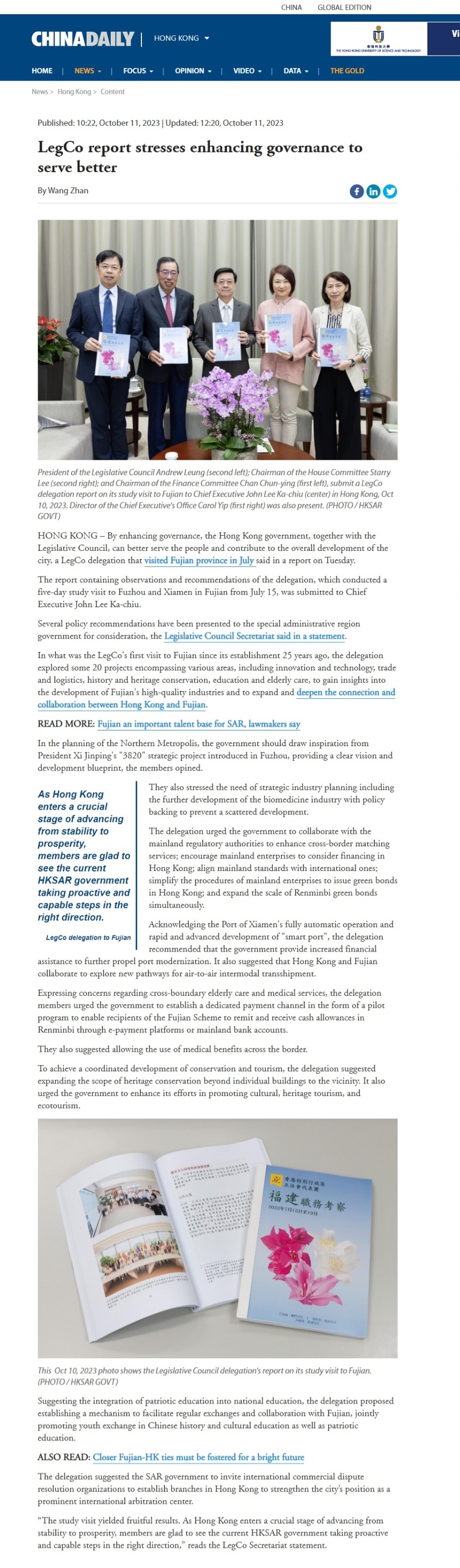 LegCo report stresses enhancing governance to serve better October 11, 2023 October 19, 2023 Issued at China Daily Hong Kong on 11 October 2023