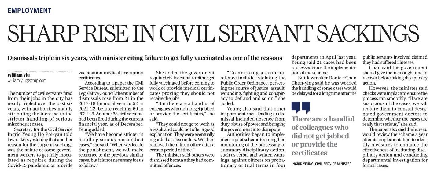 SHARP RISE IN CIVIL SERVANT SACKINGS