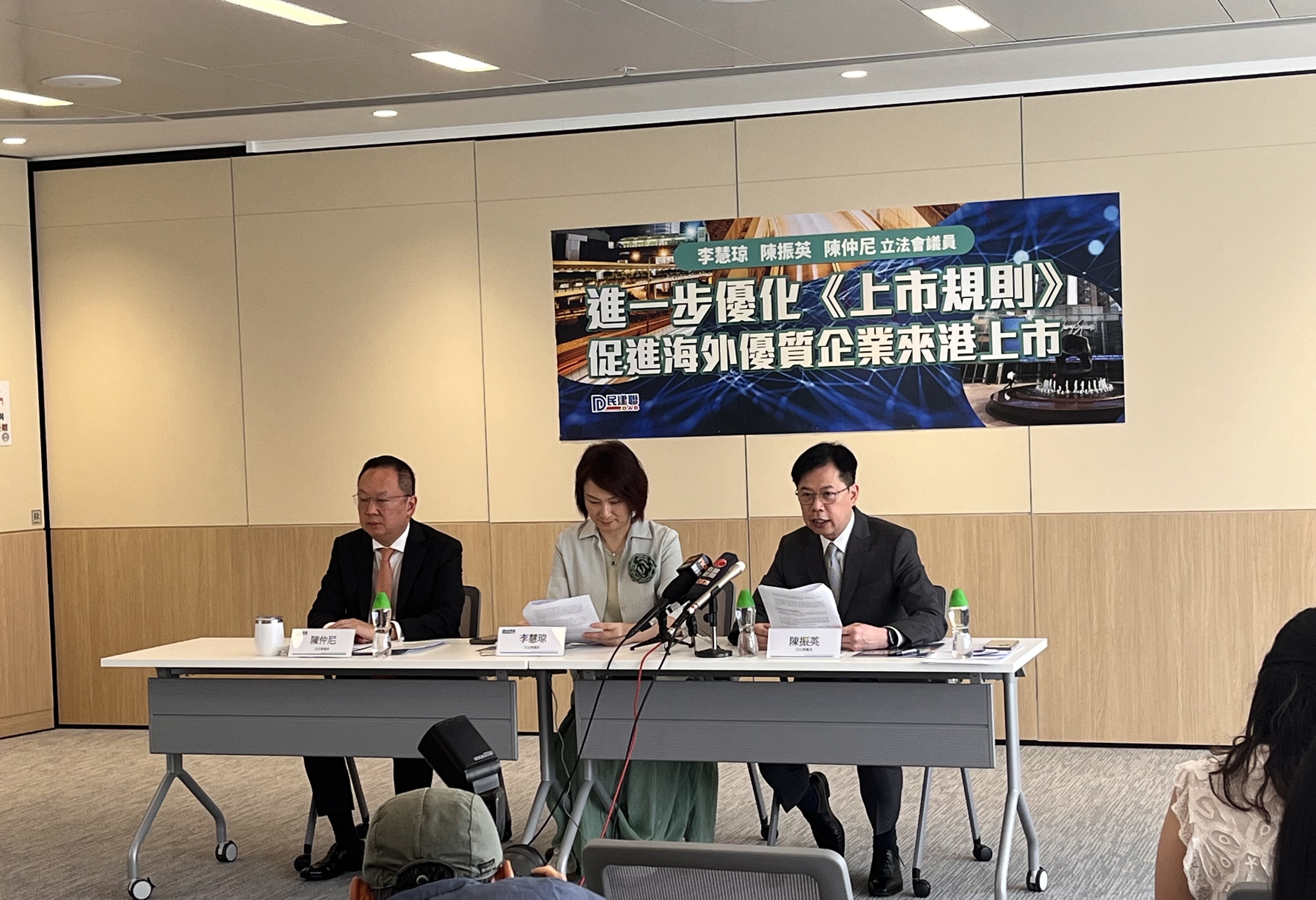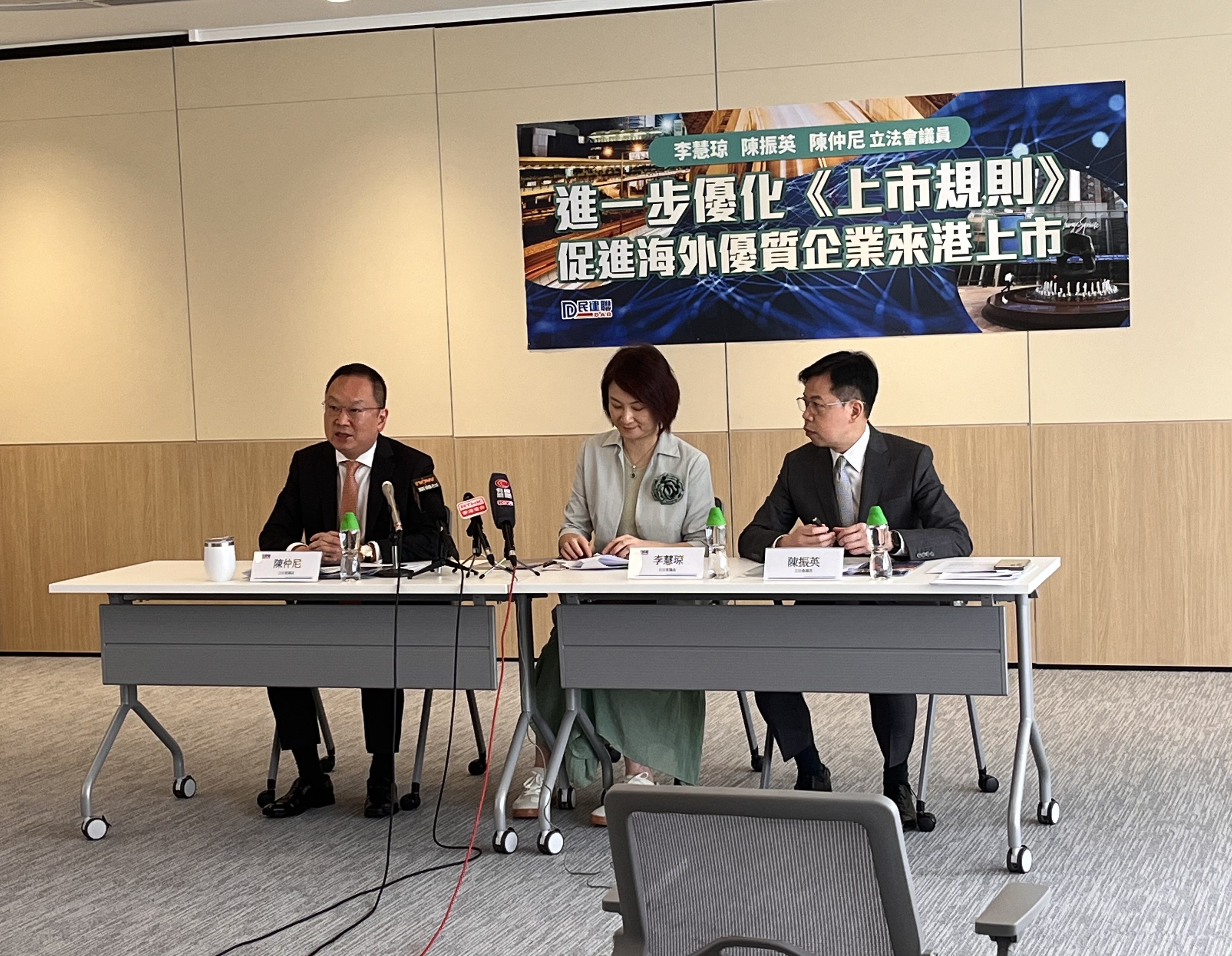 Together with Councillors Starring Lee and Chan Chung-ni, jointly releasing a proposal to further optimize the Listing Rules to promote high-quality overseas companies to list in Hong Kong and met with reporters. We will then discuss the implementation details with government officials.