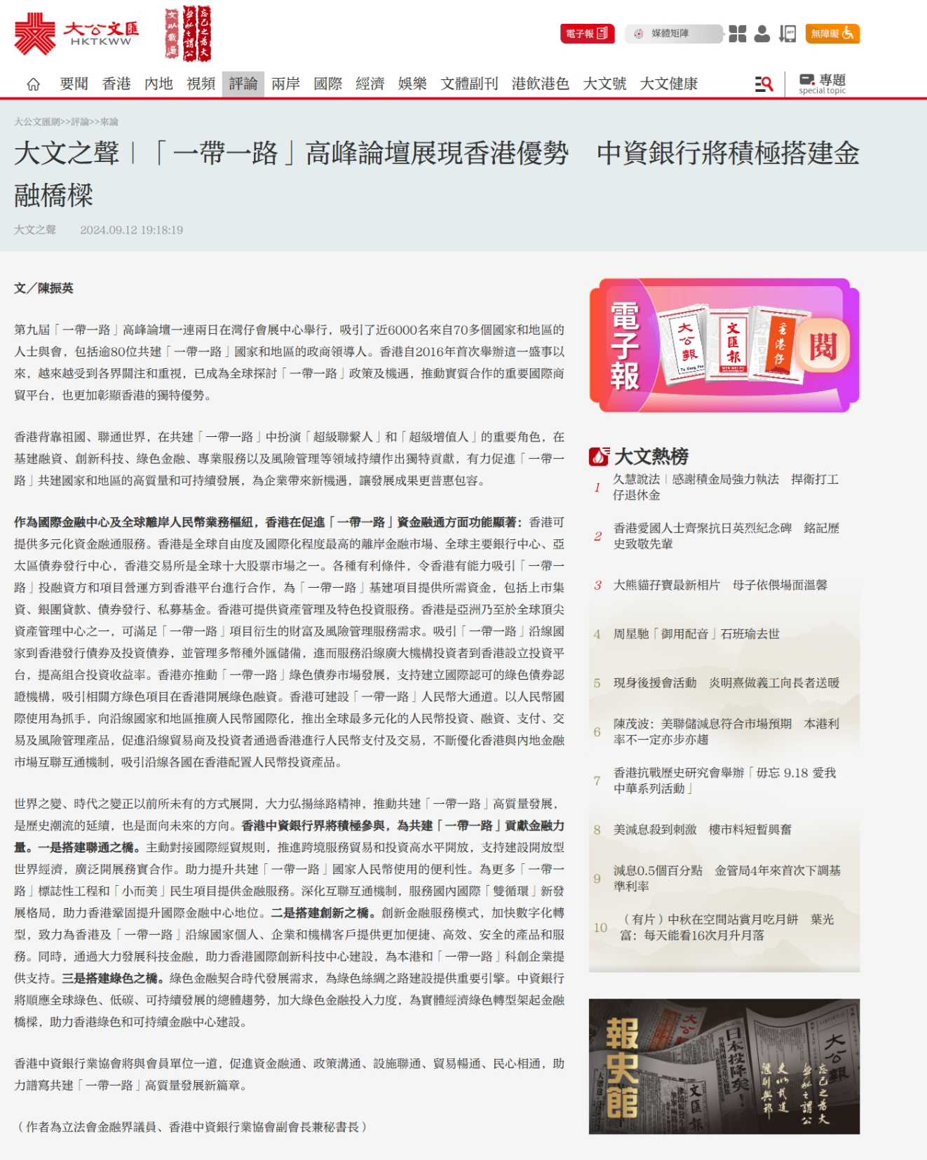 2024年9月12日大公文匯網報導