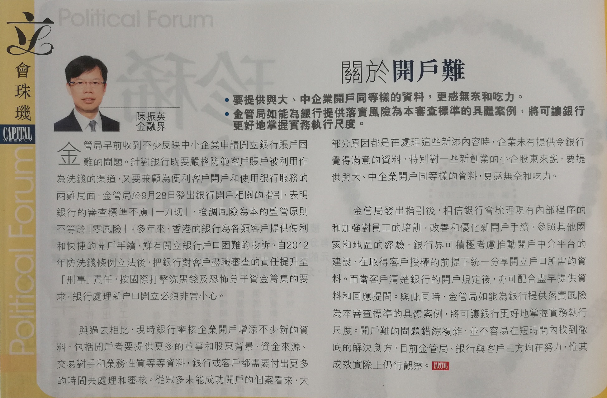 立會珠璣 – 中小企業申請開立銀行賬戶困難的問題