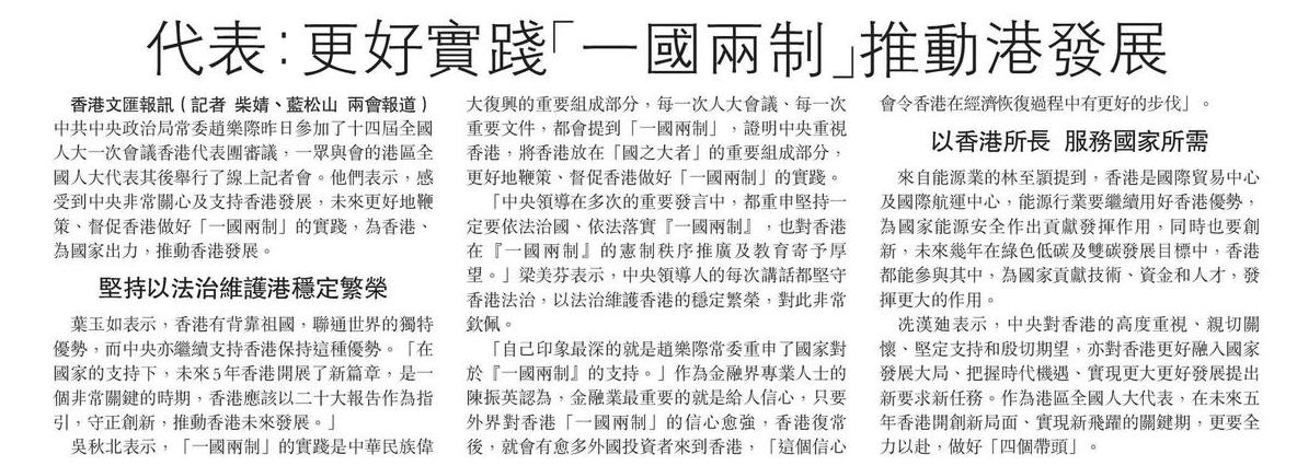 代表:更好實踐「一國兩制」推動港發展