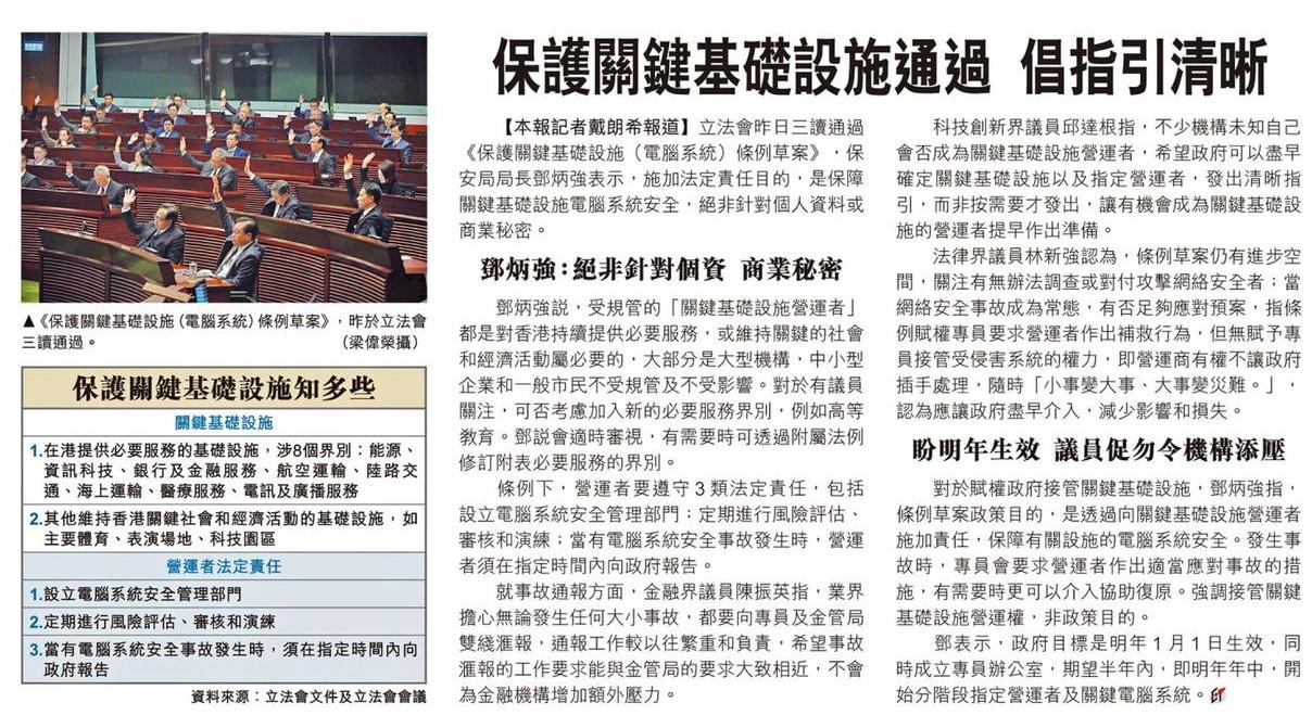 立法會大會 政府法案-:二讀《保護關鍵基礎設施(電腦系統)條例草案》發言