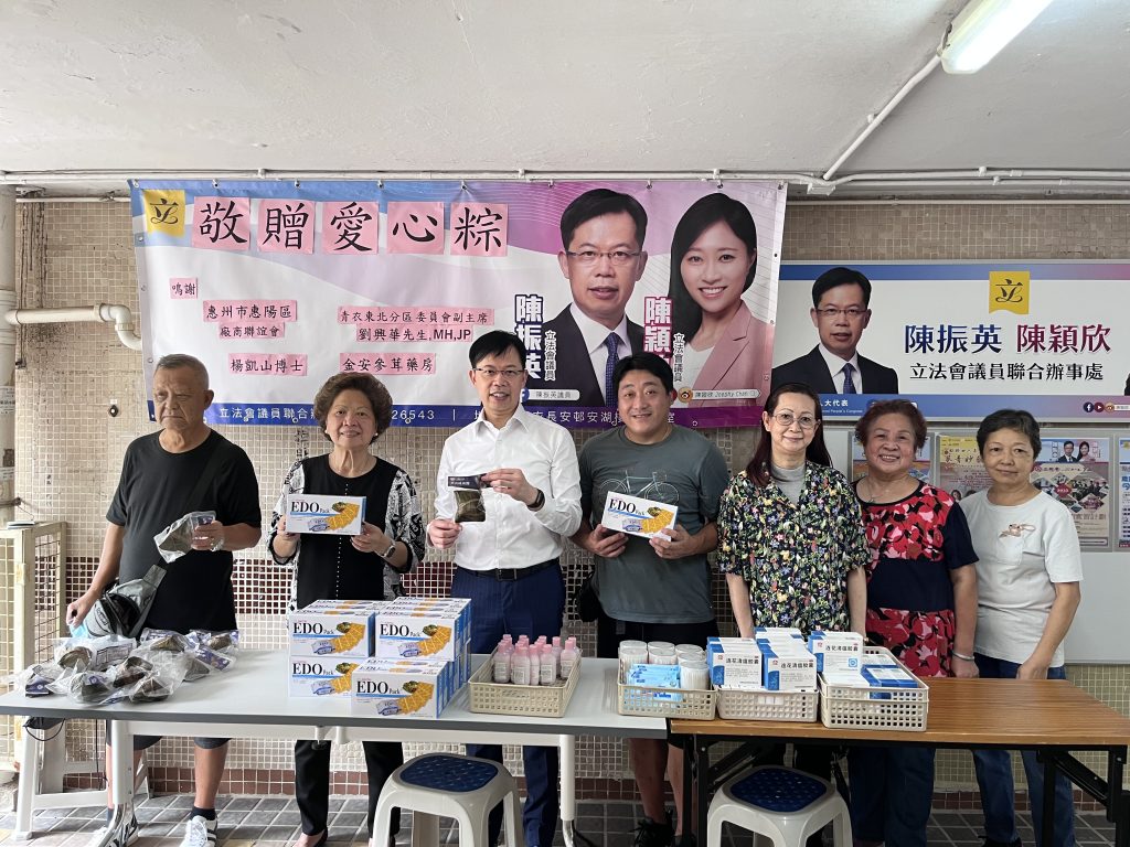 到青衣長安邨地區辦事處向市民派發粽子及應節物資