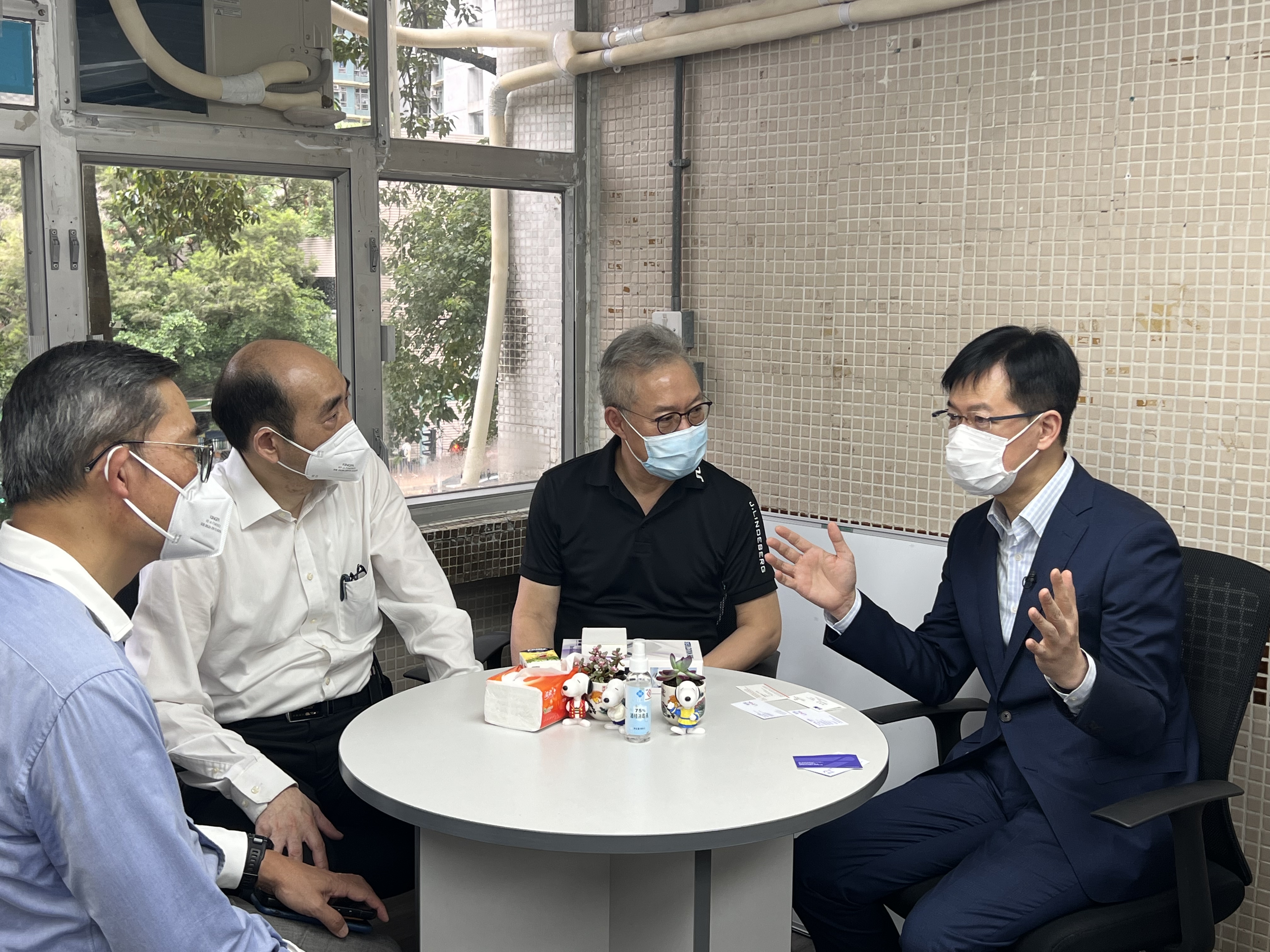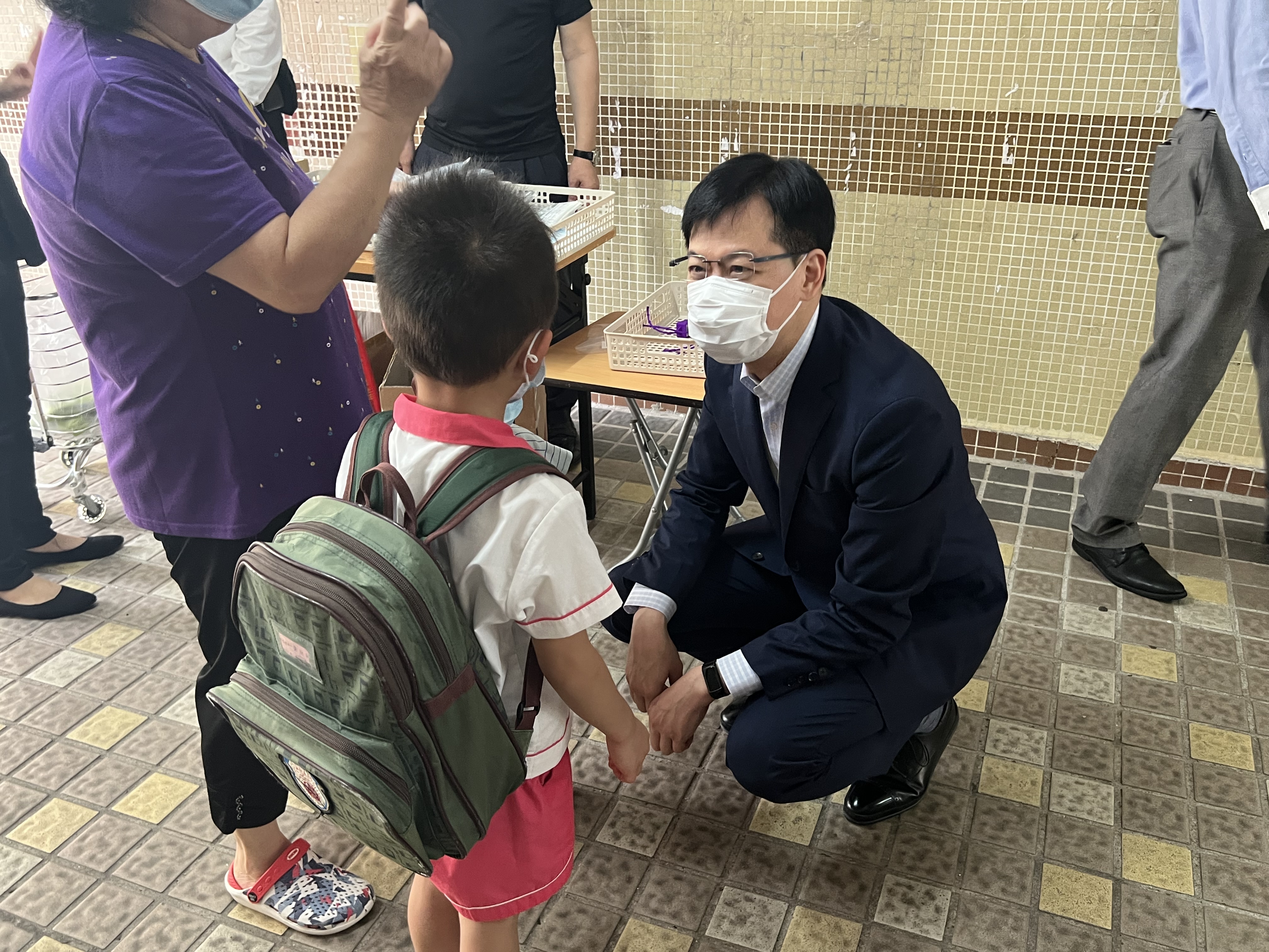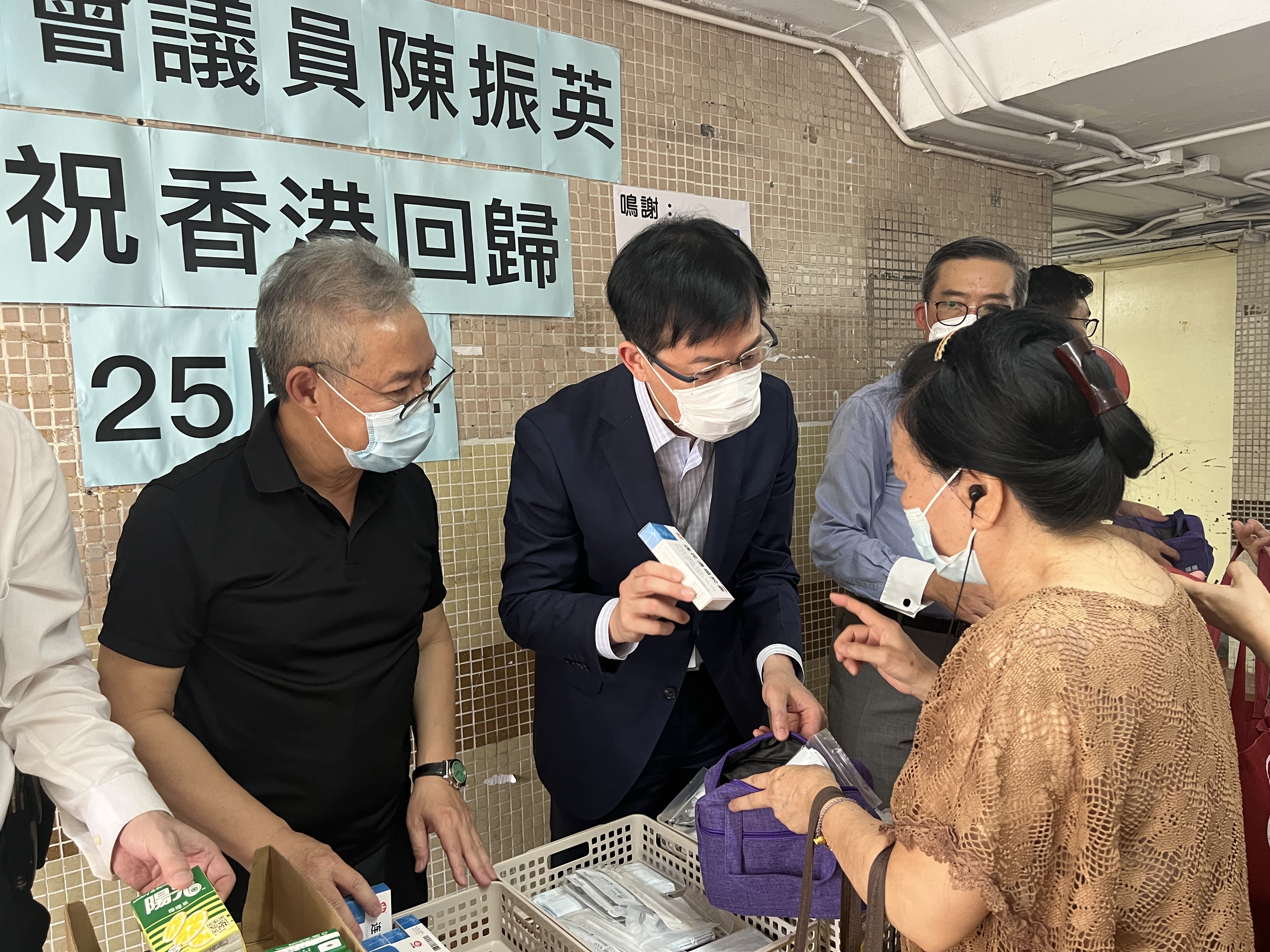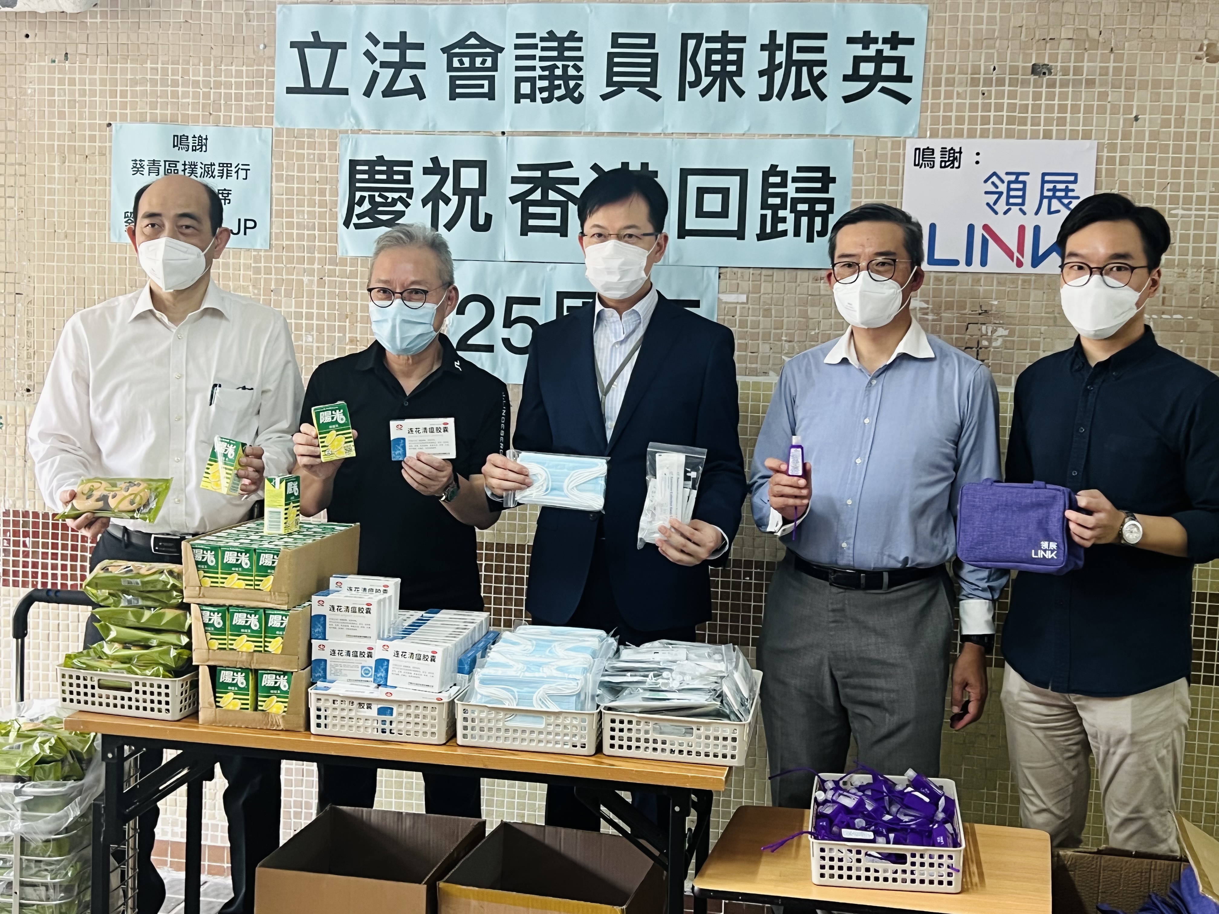 到青衣長安邨地區辦事處向市民派發防疫抗疫物資