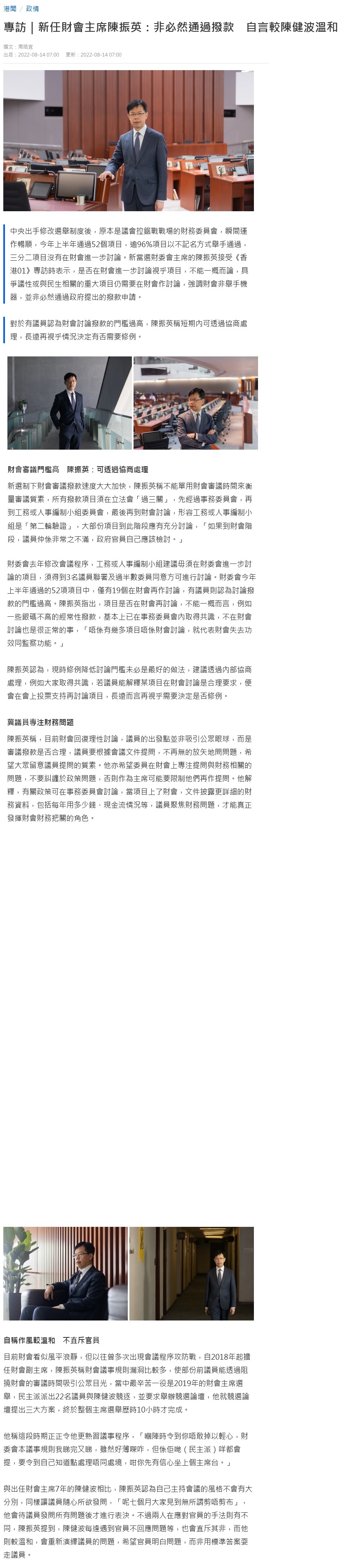 2022年8月14日香港01報導