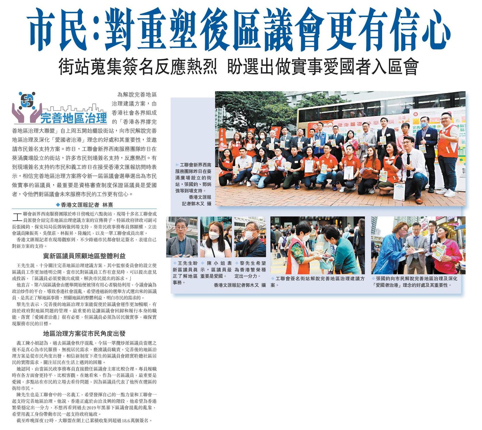 市民:對重塑後區議會更有信心 街站蒐集簽名反應熱烈 盼選出做實事愛國者入區會