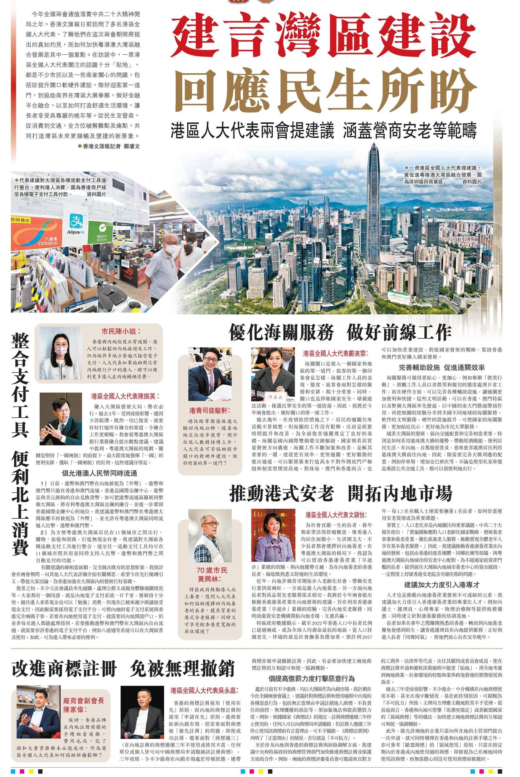 建言灣區建設 回應民生所盼 港區人大代表兩會提建議 涵蓋營商安老等範疇
