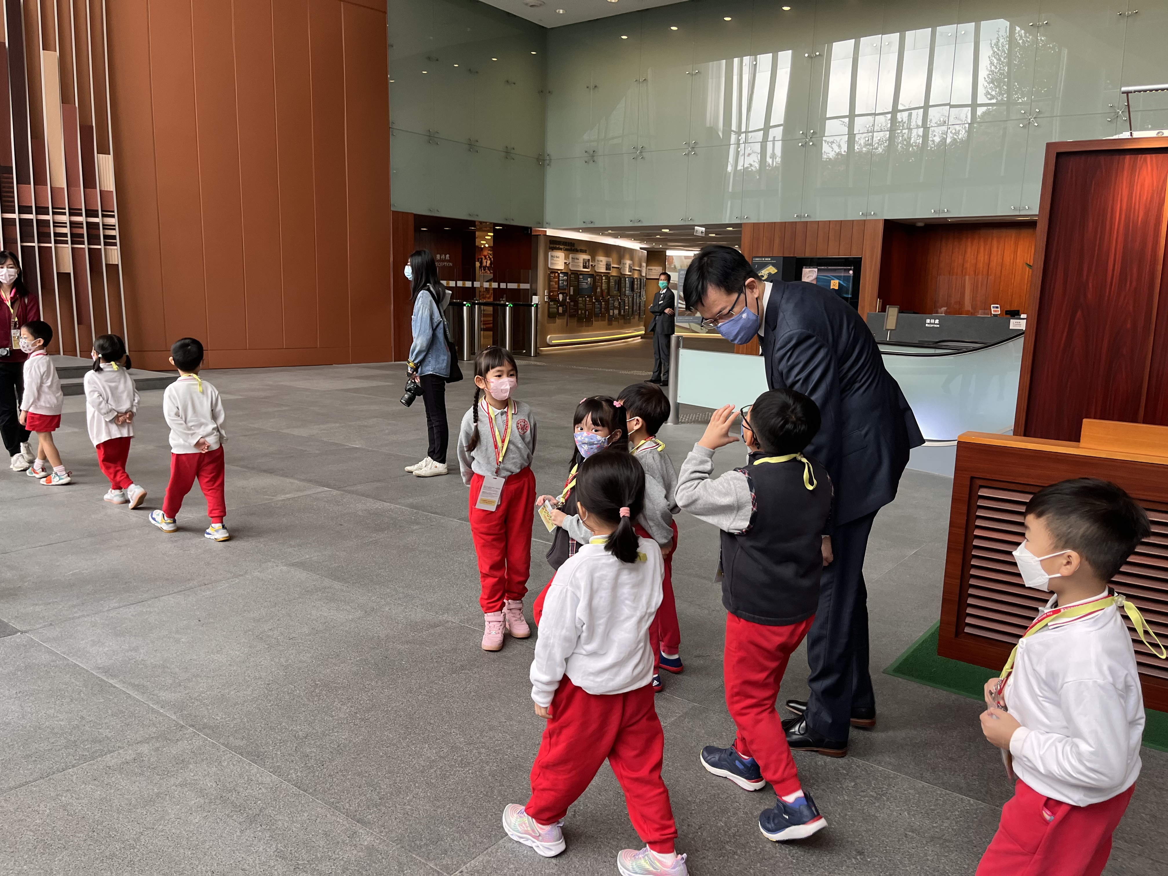 接待到立法會參觀的五邑工商總會張祝珊幼稚園學生