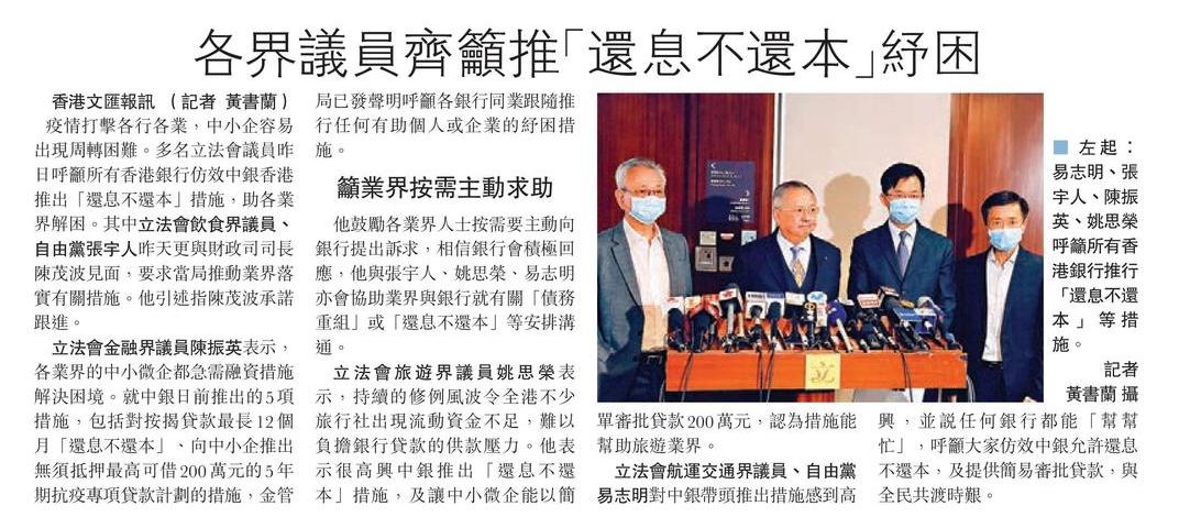 本人與旅遊、飲食及航運交通界議員會見記者,發表紓解目前該等行業營商困難的建議。