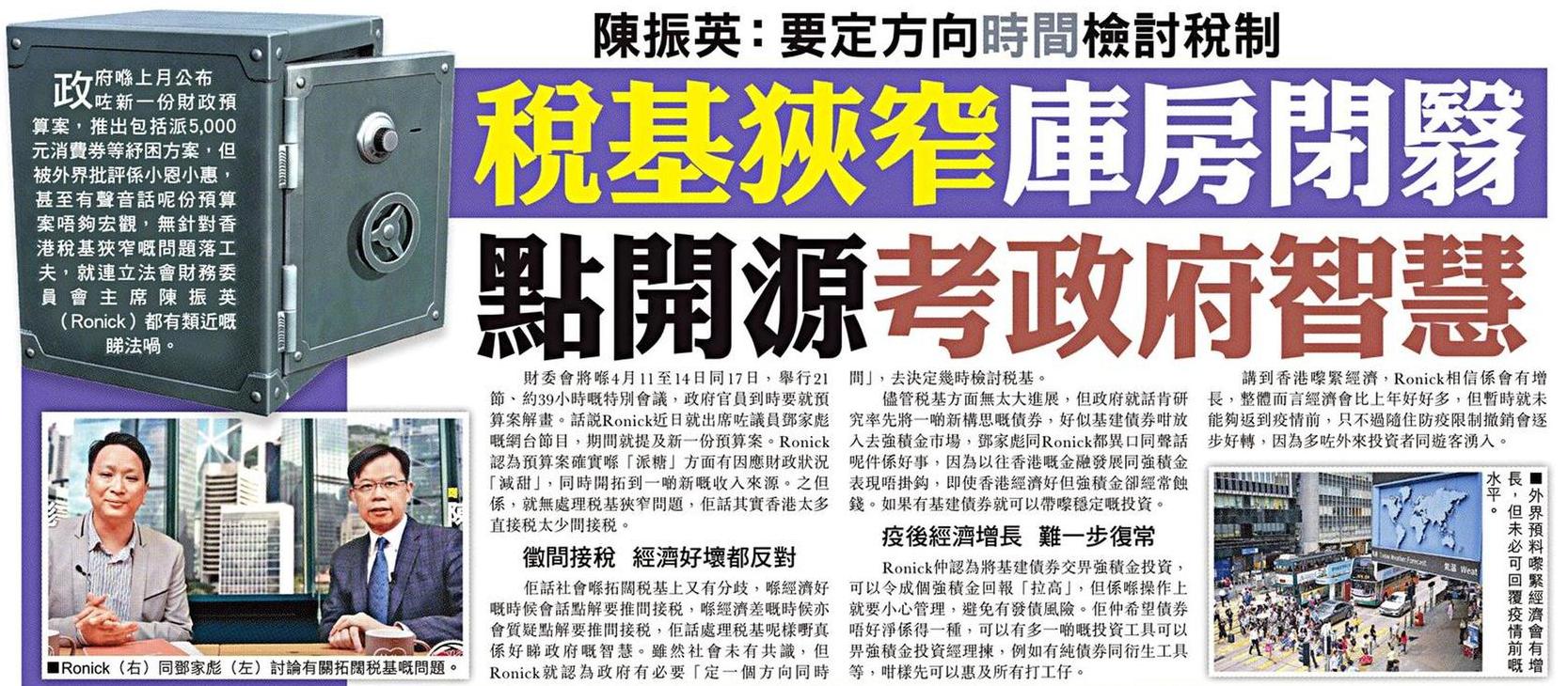 稅基狹窄 庫房閉翳 點開源 考政府智慧 陳振英:要定方向 時間 檢討稅制