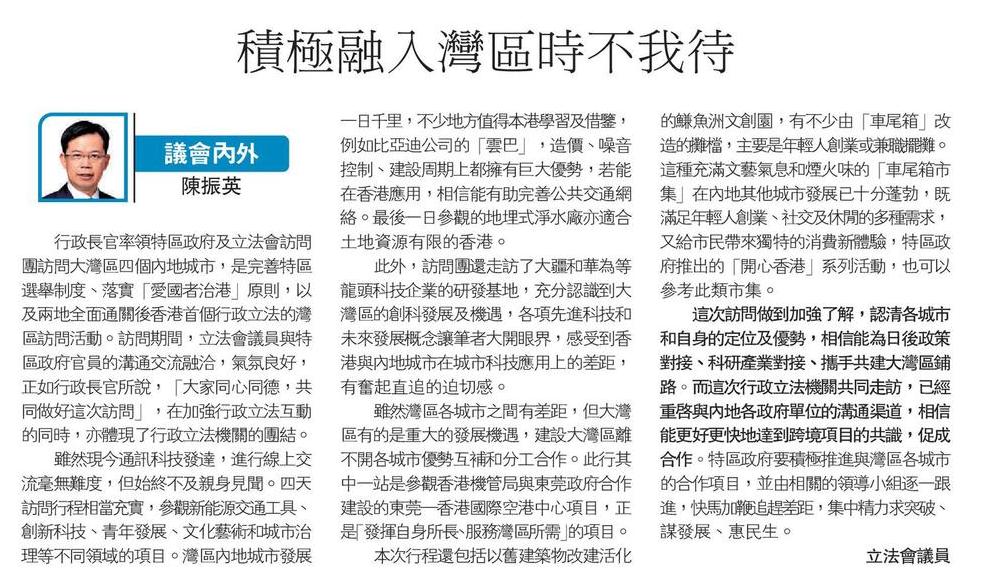 積極融入灣區時不我待