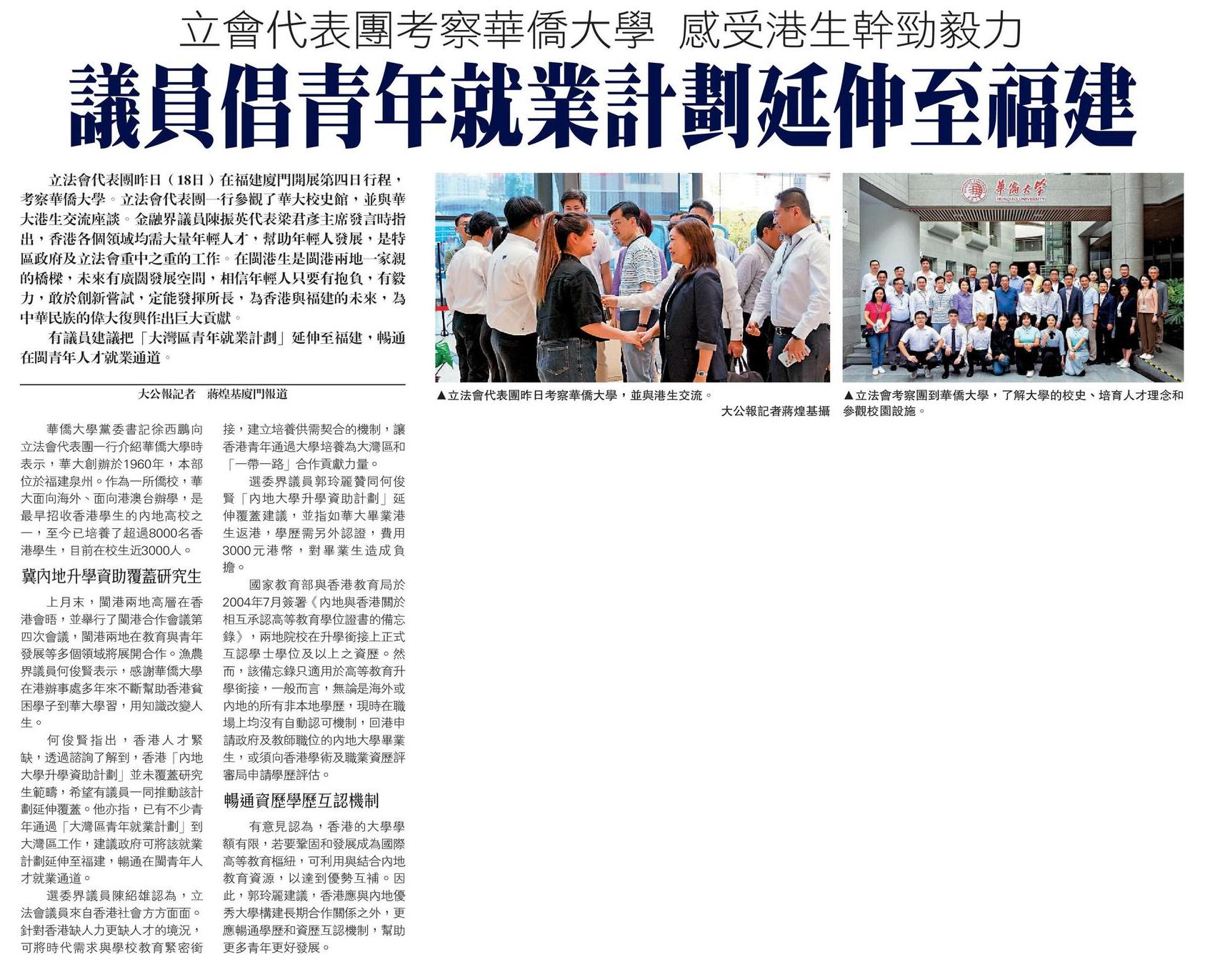 立會代表團考察華僑大學 感受港生幹勁毅力 議員倡青年就業計劃延伸至福建