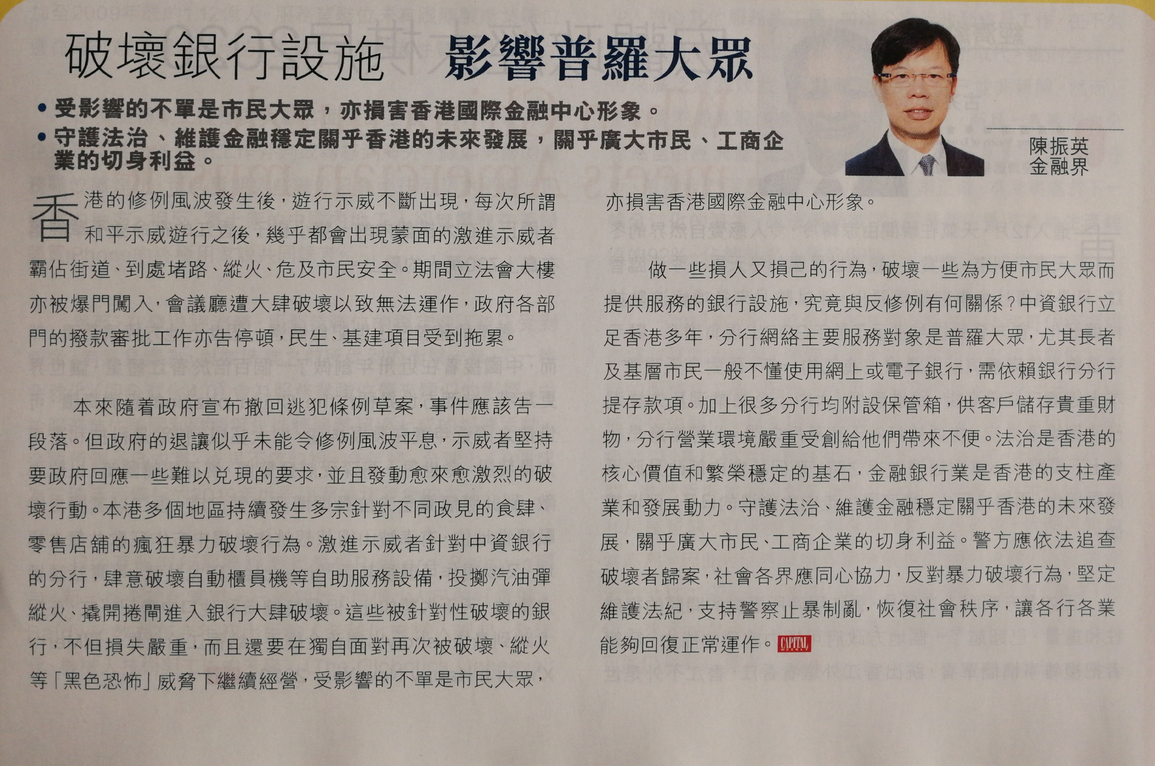 立會珠璣 – 破壞銀行設施 影響普羅大眾