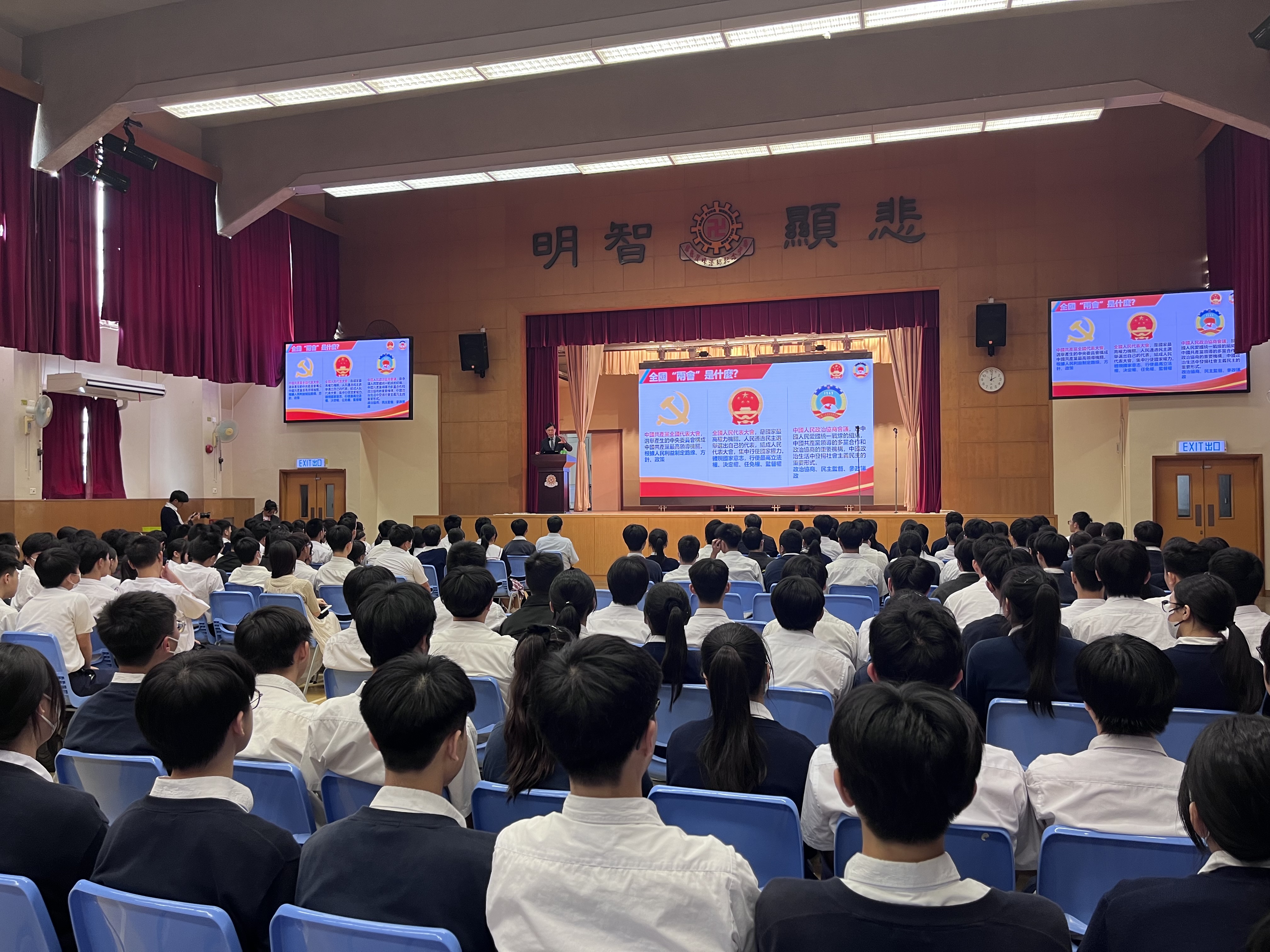 與佛教茂峰紀念中學學生就2024年全國兩會主要精神進行宣講並就兩會內容、金融人才等題目進行互動交流