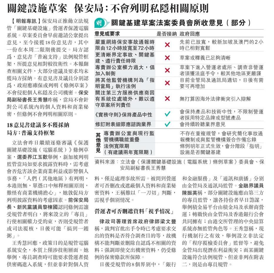 關鍵設施草案 保安局:不會列明私隱相關原則