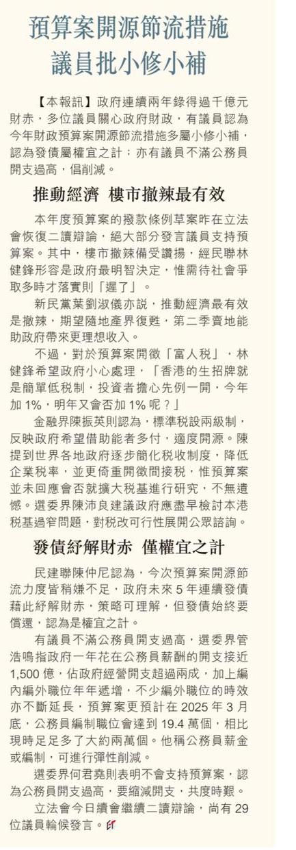 預算案開源節流措施 議員批小修小補