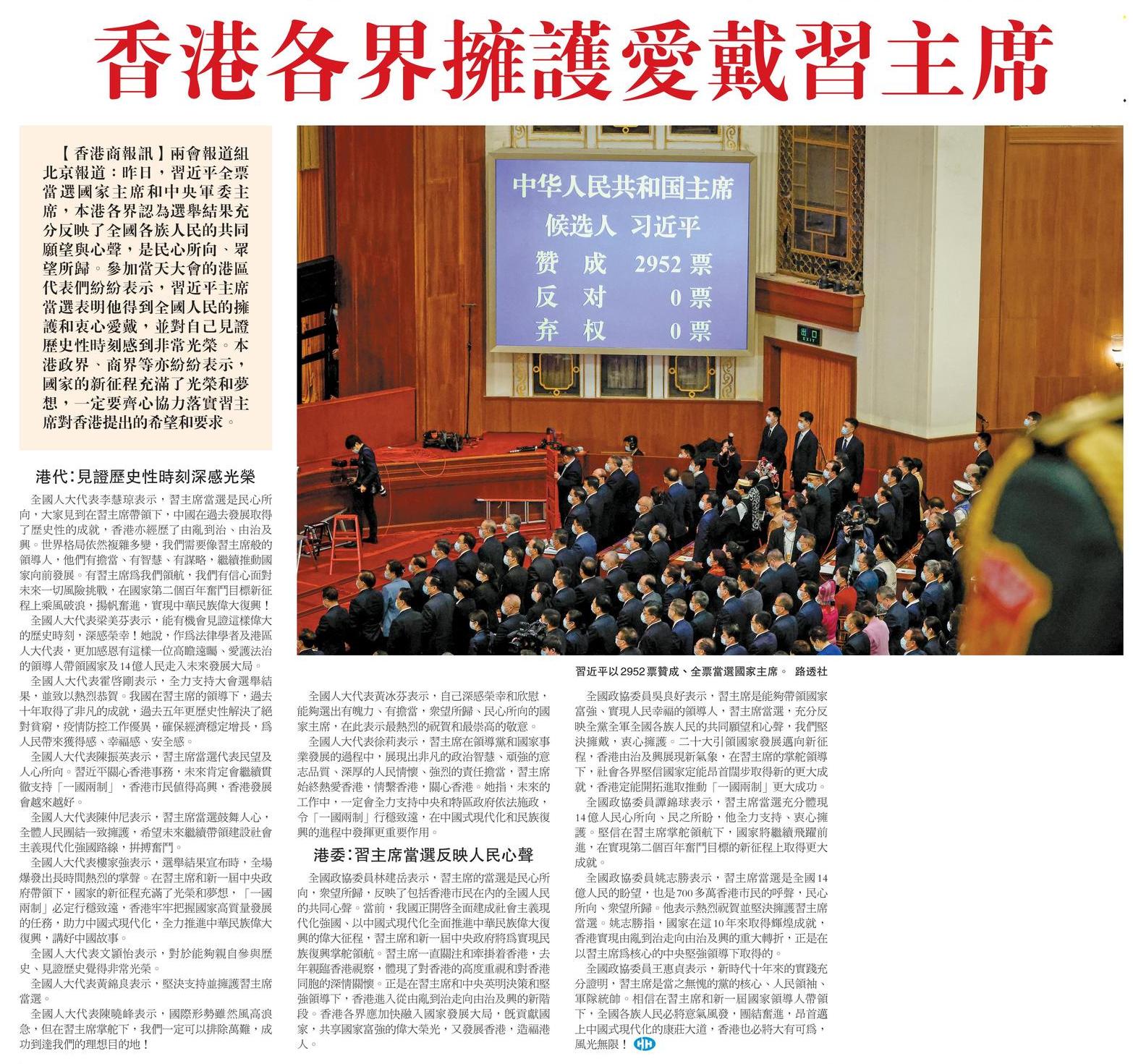 2023年3月11日香港商報報導
