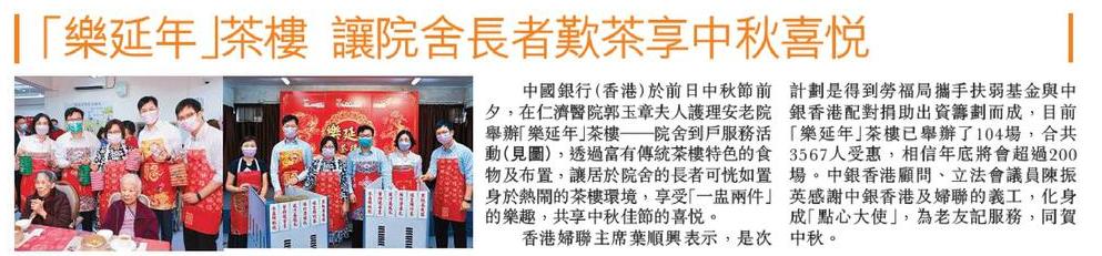 「樂延年」茶樓讓院舍長者歎茶享中秋喜悅