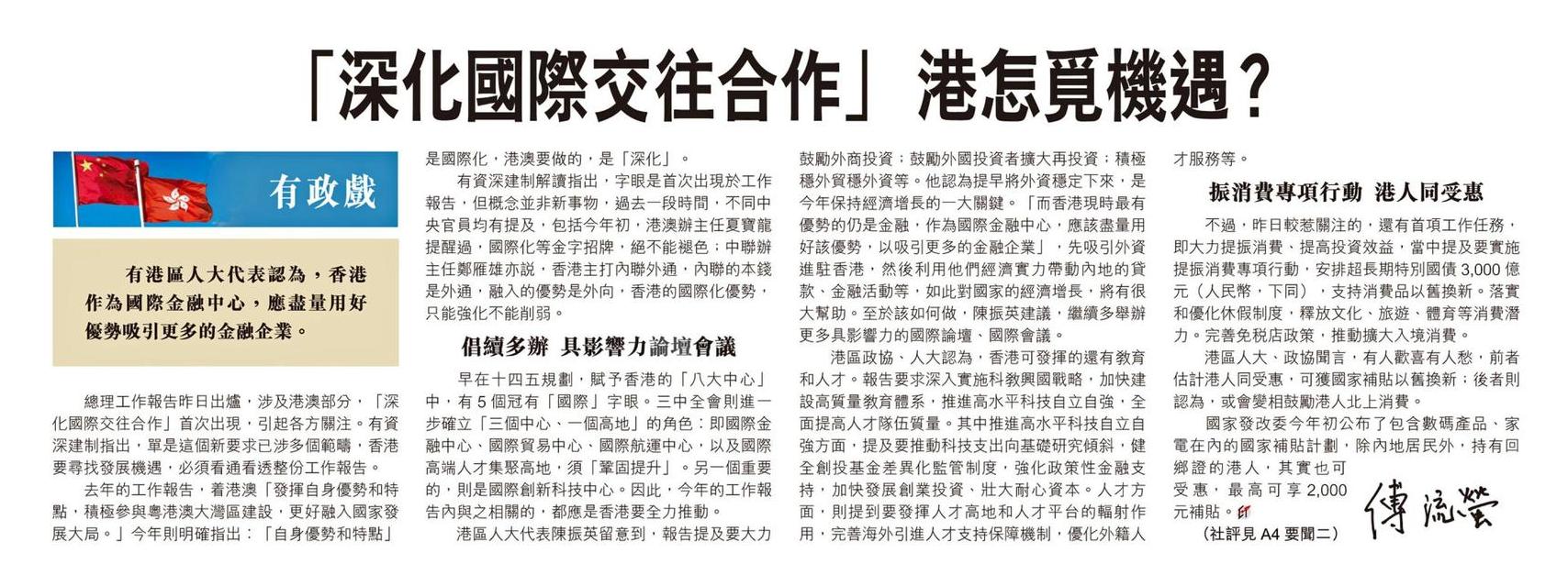 2025年3月6日香港經濟日報報導