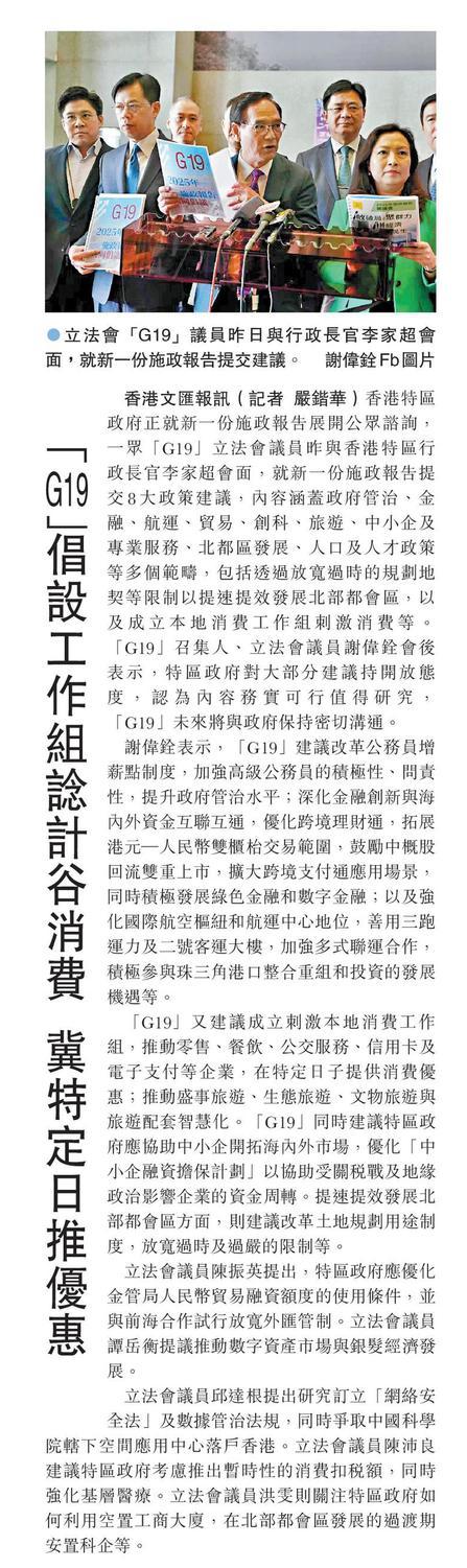 「G19」倡設 刺激本地消費工作組