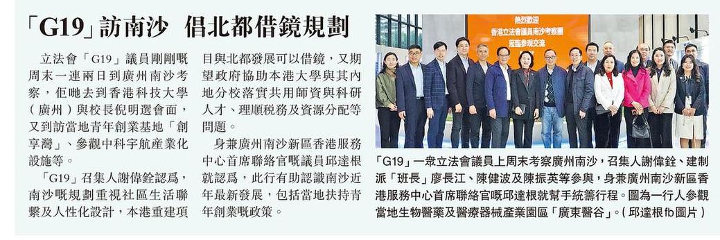 「G19」訪南沙 倡北都借鏡規劃