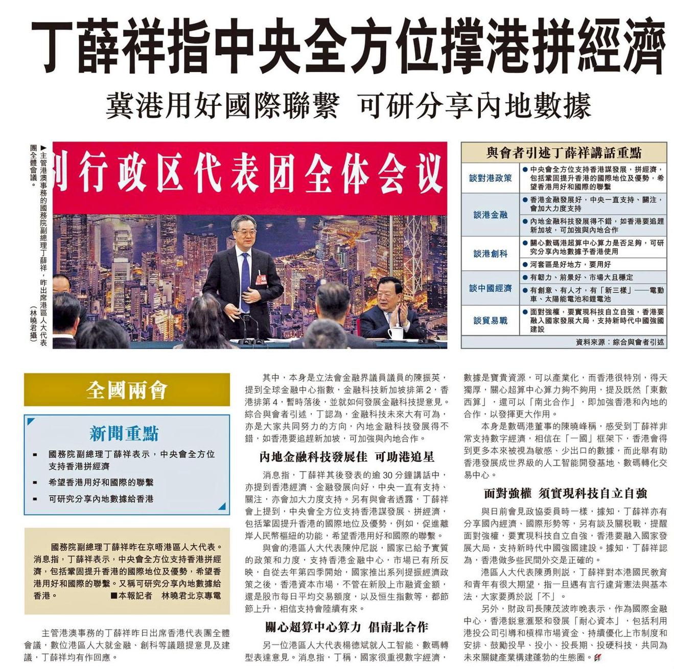 丁薛祥參加香港代表團審議 勉港加快培育新產業新賽道