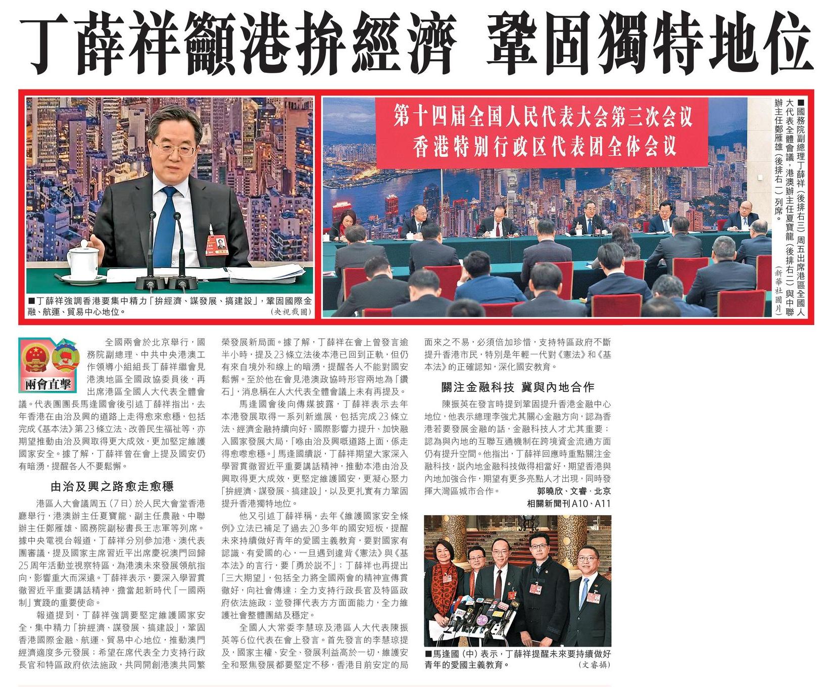 丁薛祥籲港拚經濟 鞏固獨特地位
