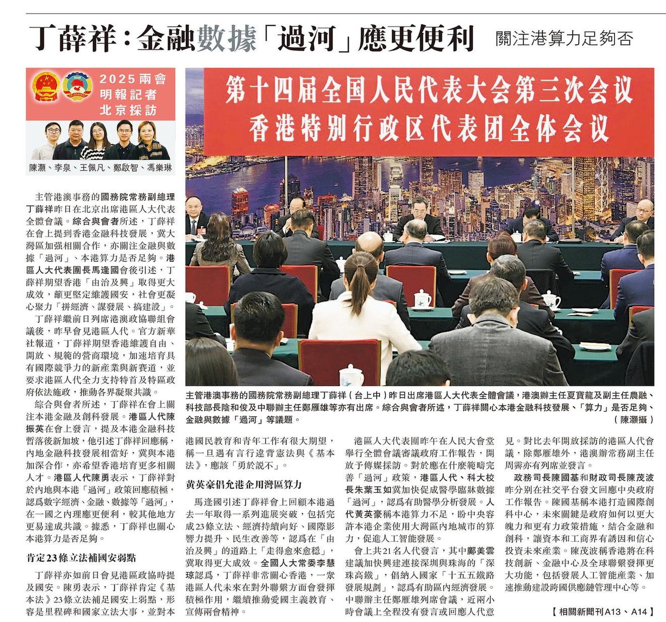 丁薛祥:金融數據「過河」應更便利 關注港算力足夠否