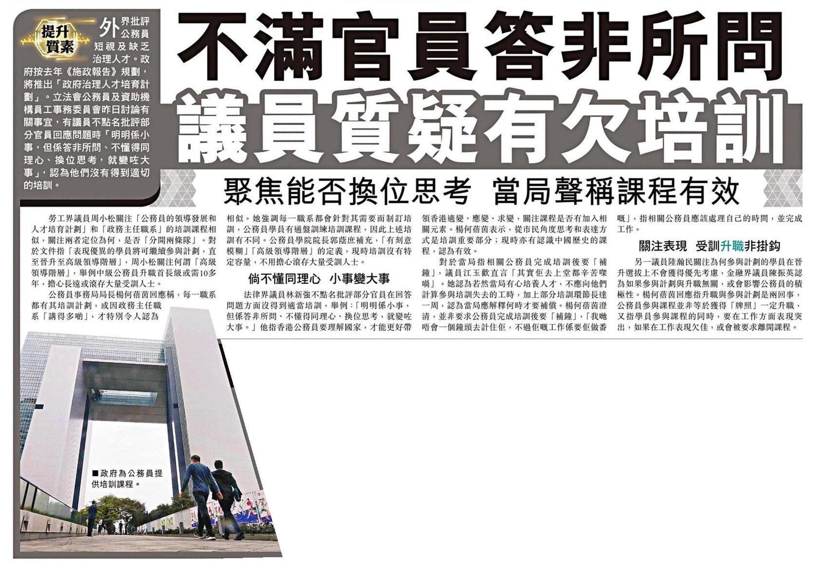 不滿官員答非所問 議員質疑有欠培訓 聚焦能否換位思考 當局聲稱課程有效