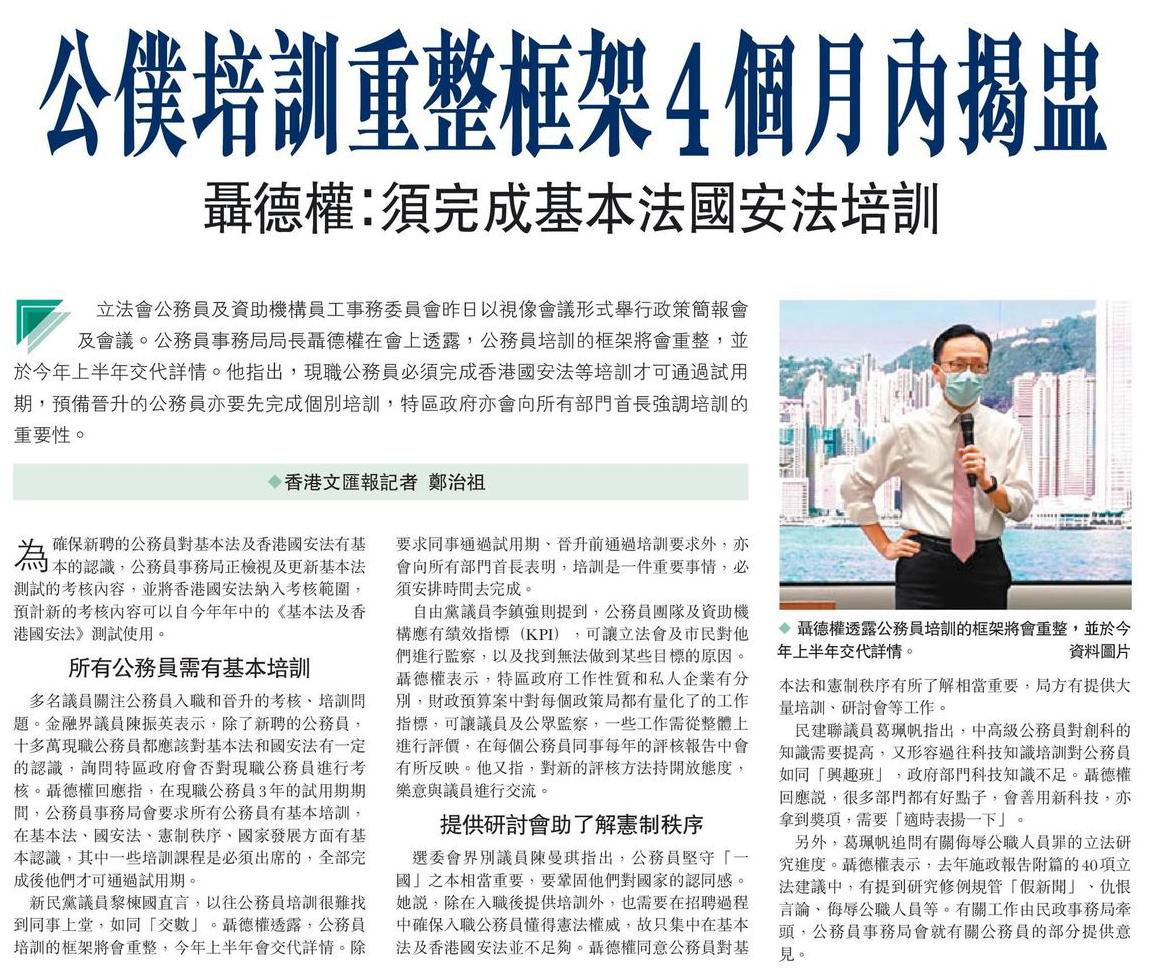 公僕培訓重整框架4個月內揭盅 聶德權:須完成基本法國安法培訓