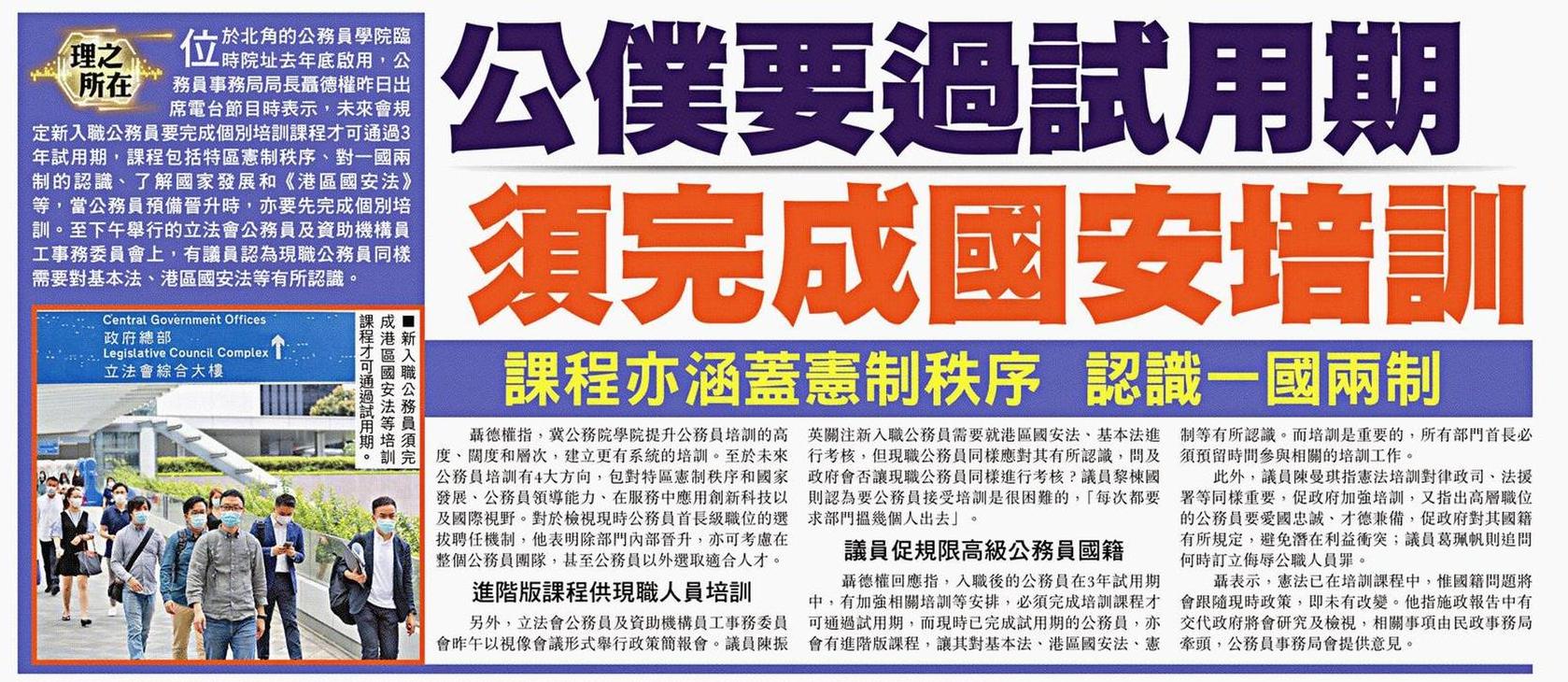 公僕要過試用期 須完成國安培訓 課程亦涵蓋憲制秩序 認識一國兩制