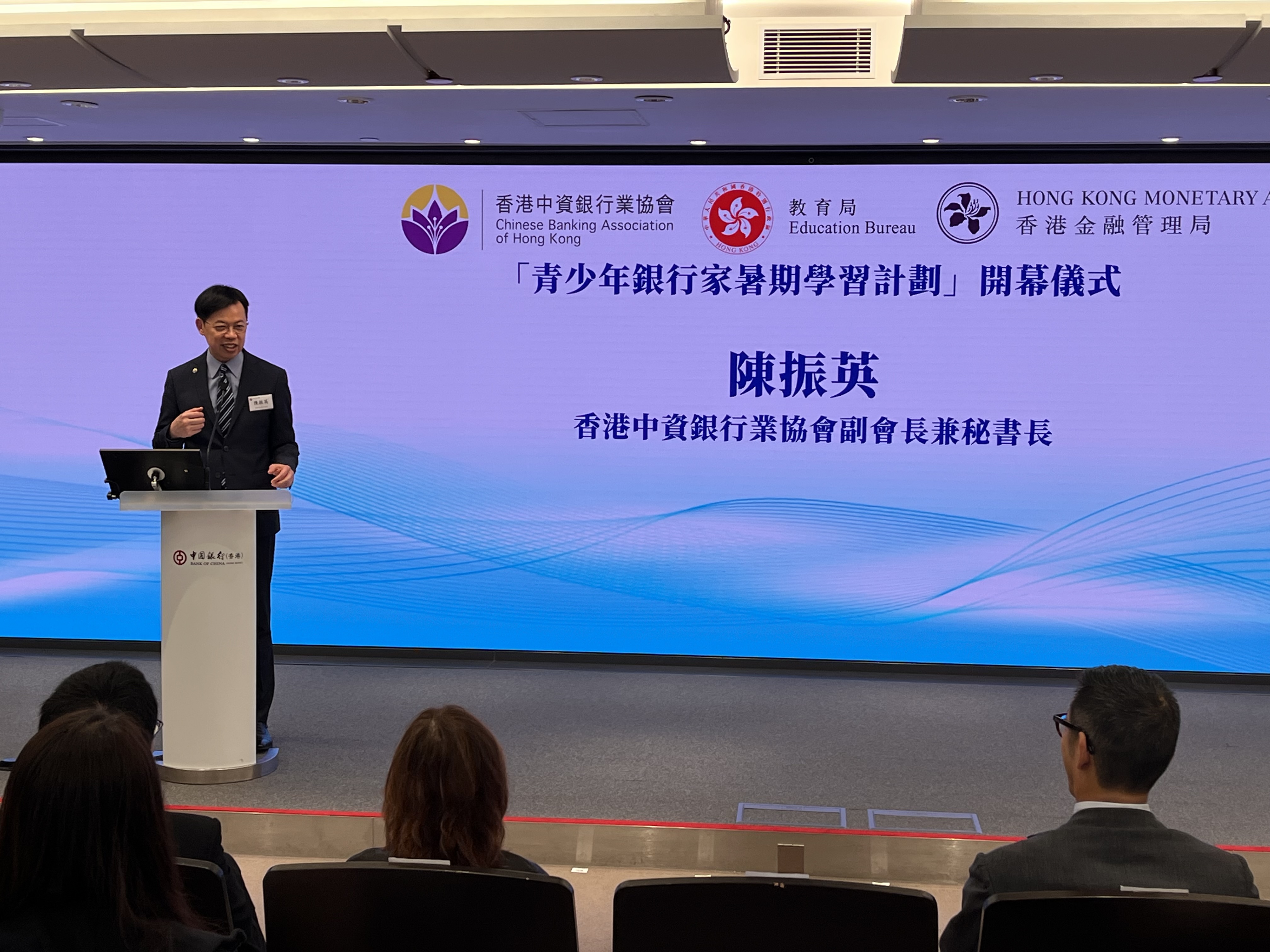出席由香港中資銀行業協會、教育局及金管局合辦的青少年銀行家暑期學期計劃開幕儀式
