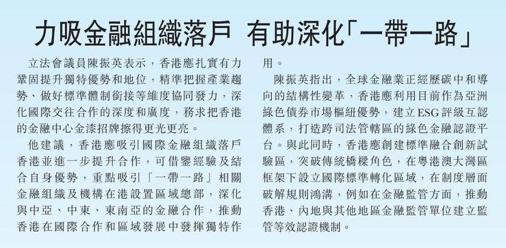 力吸金融組織落戶 有助深化「一帶一路」