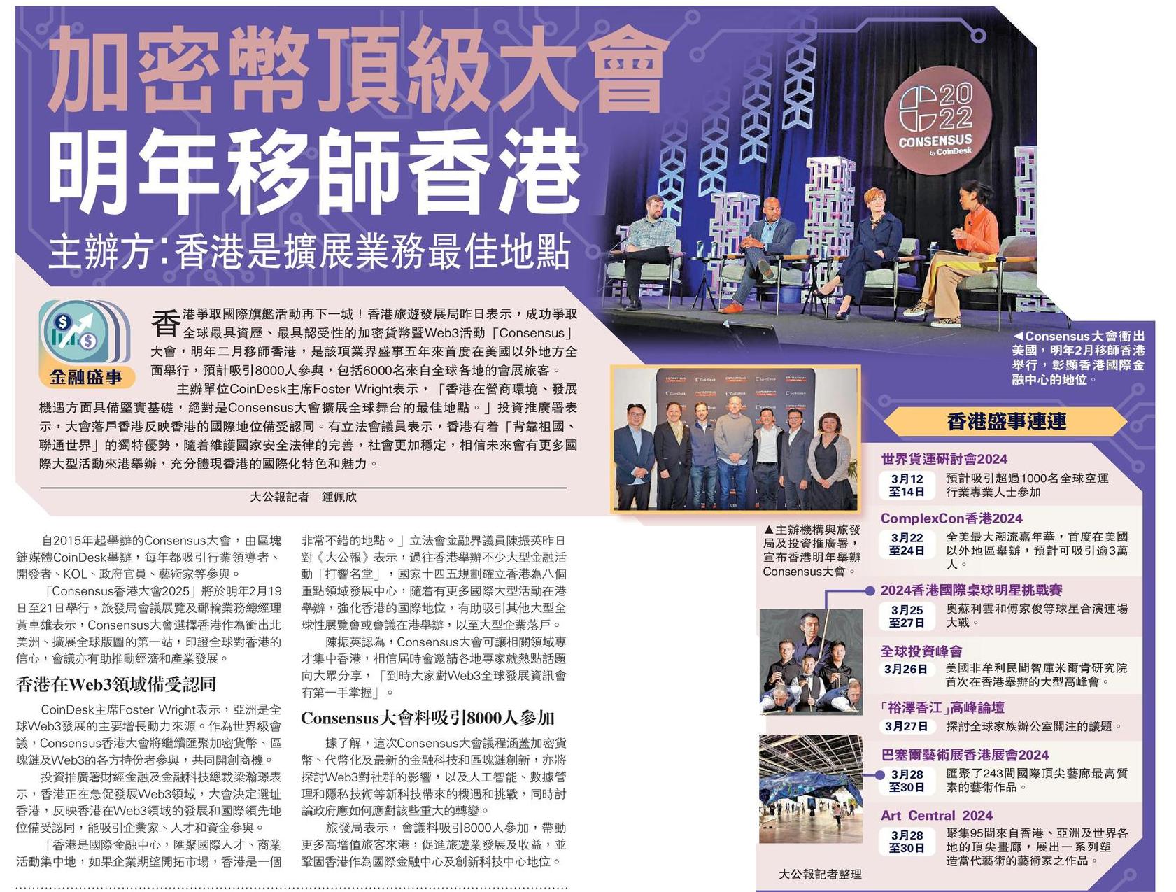 加密幣頂級大會 明年移師香港 主辦方:香港是擴展業務最佳地點