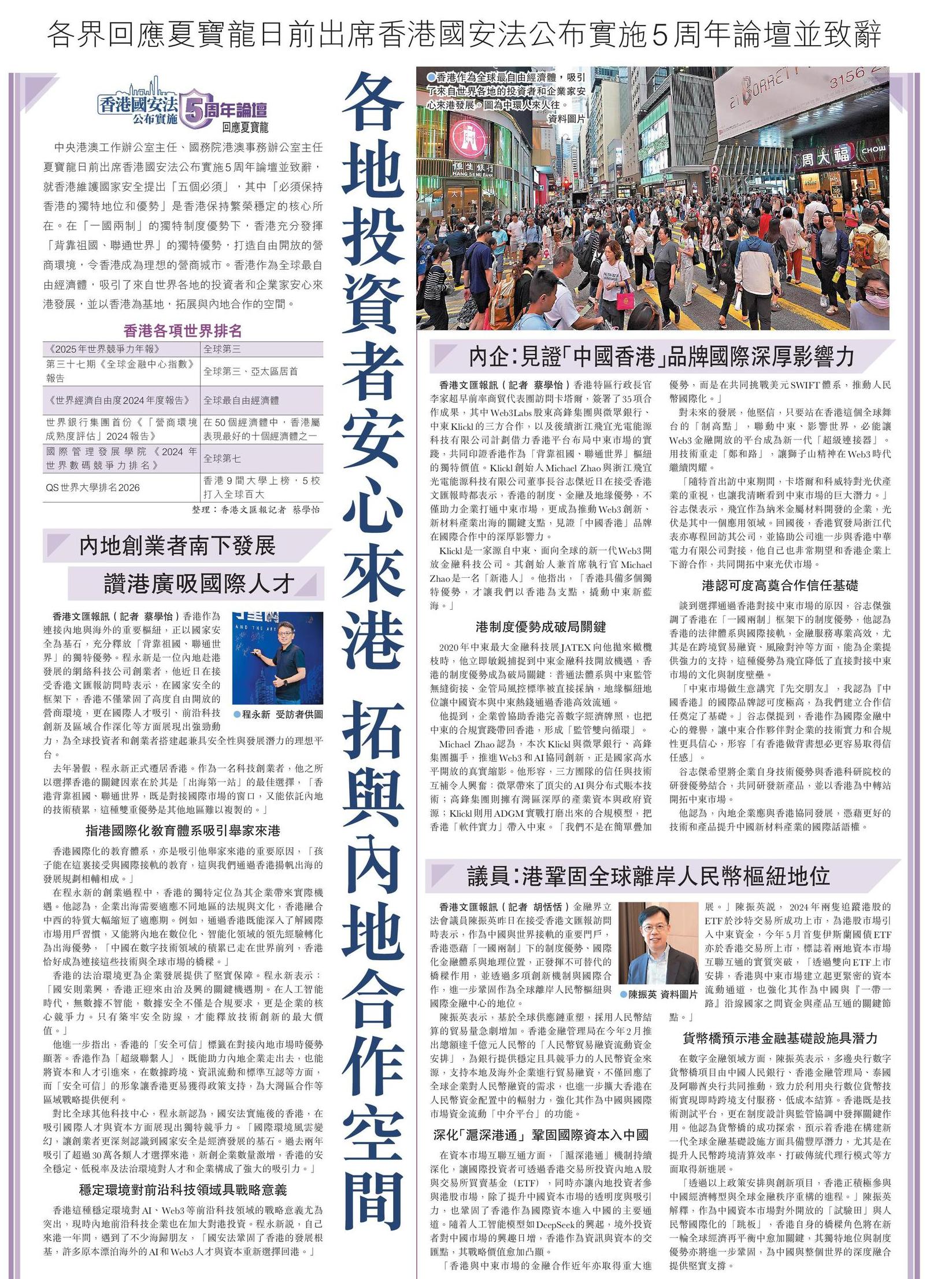 各界回應夏寶龍日前出席香港國安法公布實施5周年論壇並致辭 各地投資者安心來港 拓與內地合作空間