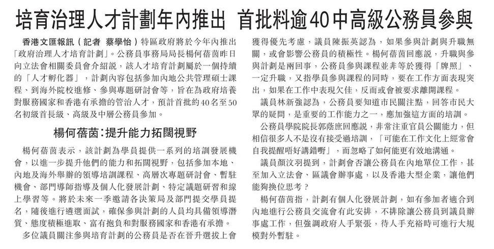 培育治理人才計劃年內推出 首批料逾40中高級公務員參與