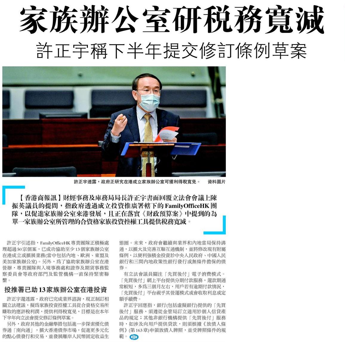 家族辦公室研稅務寬減 許正宇稱下半年提交修訂條例草案