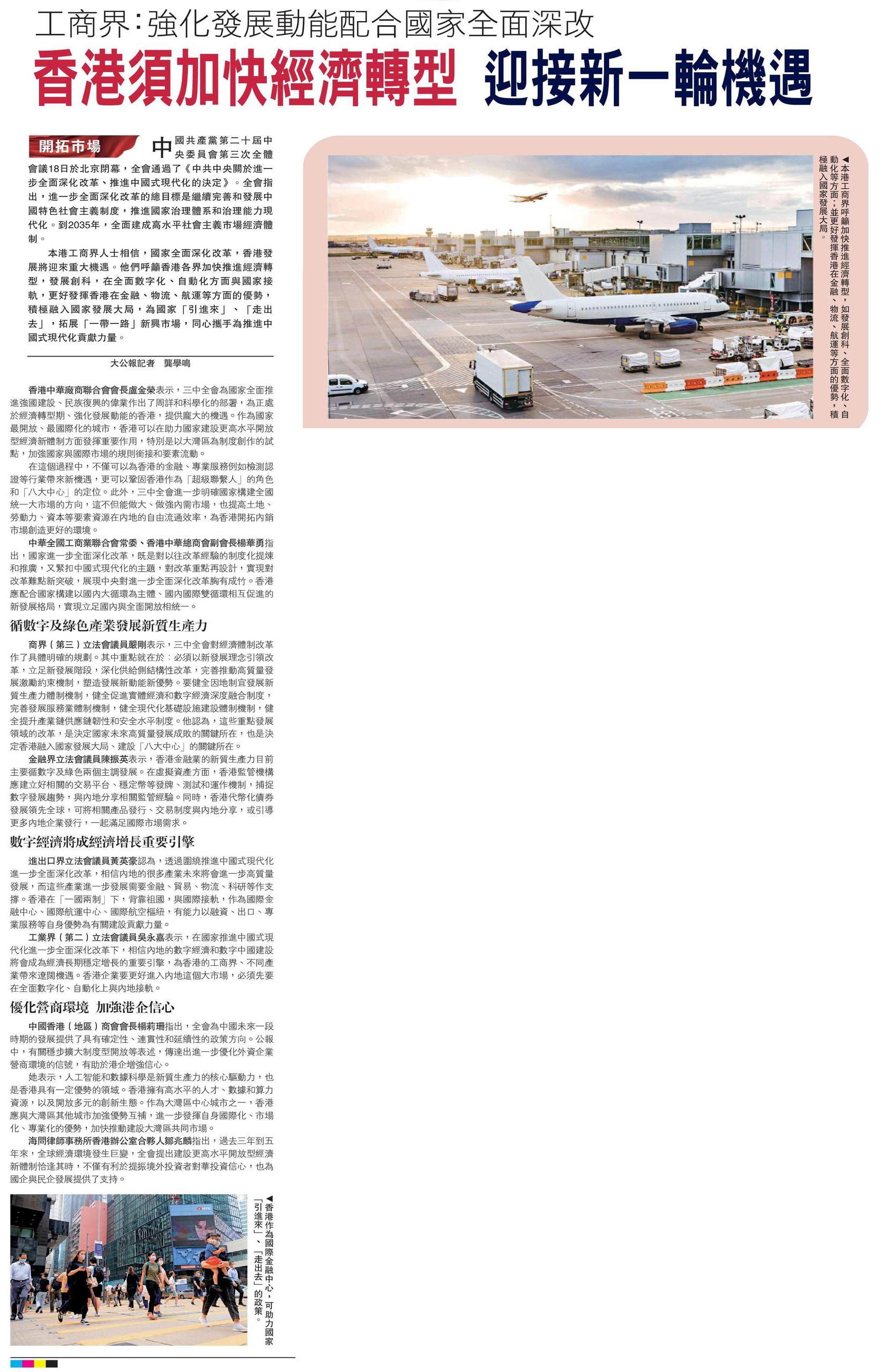 工商界:強化發展動能配合國家全面深改 香港須加快經濟轉型 迎接新一輪機遇