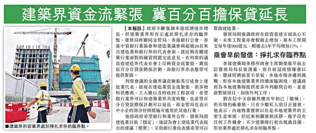發展局財金官晤建築業 銀行稱不隨便收緊信貸