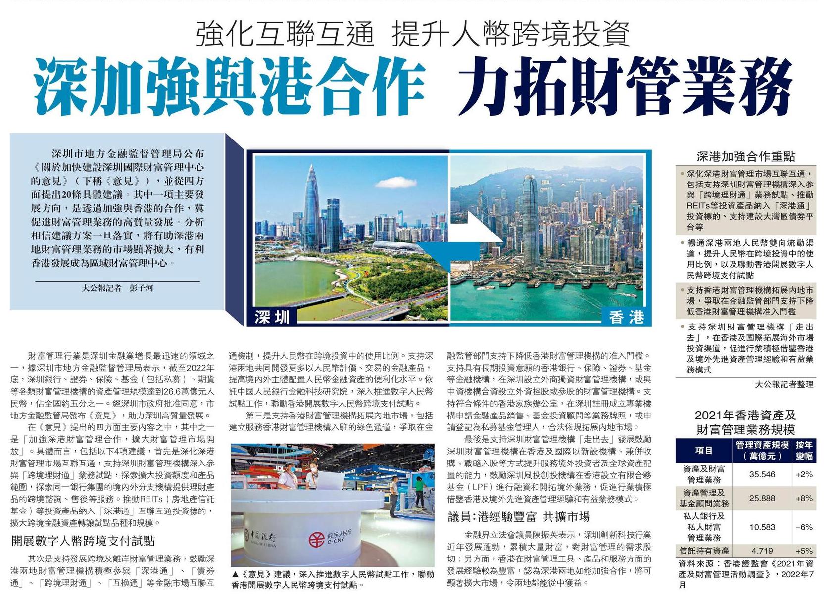 強化互聯互通 提升人幣跨境投資 深加強與港合作 力拓財管業務